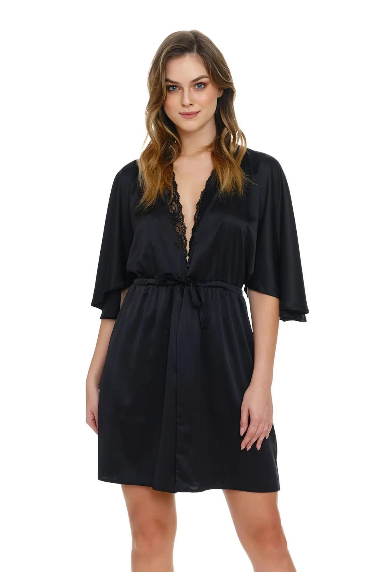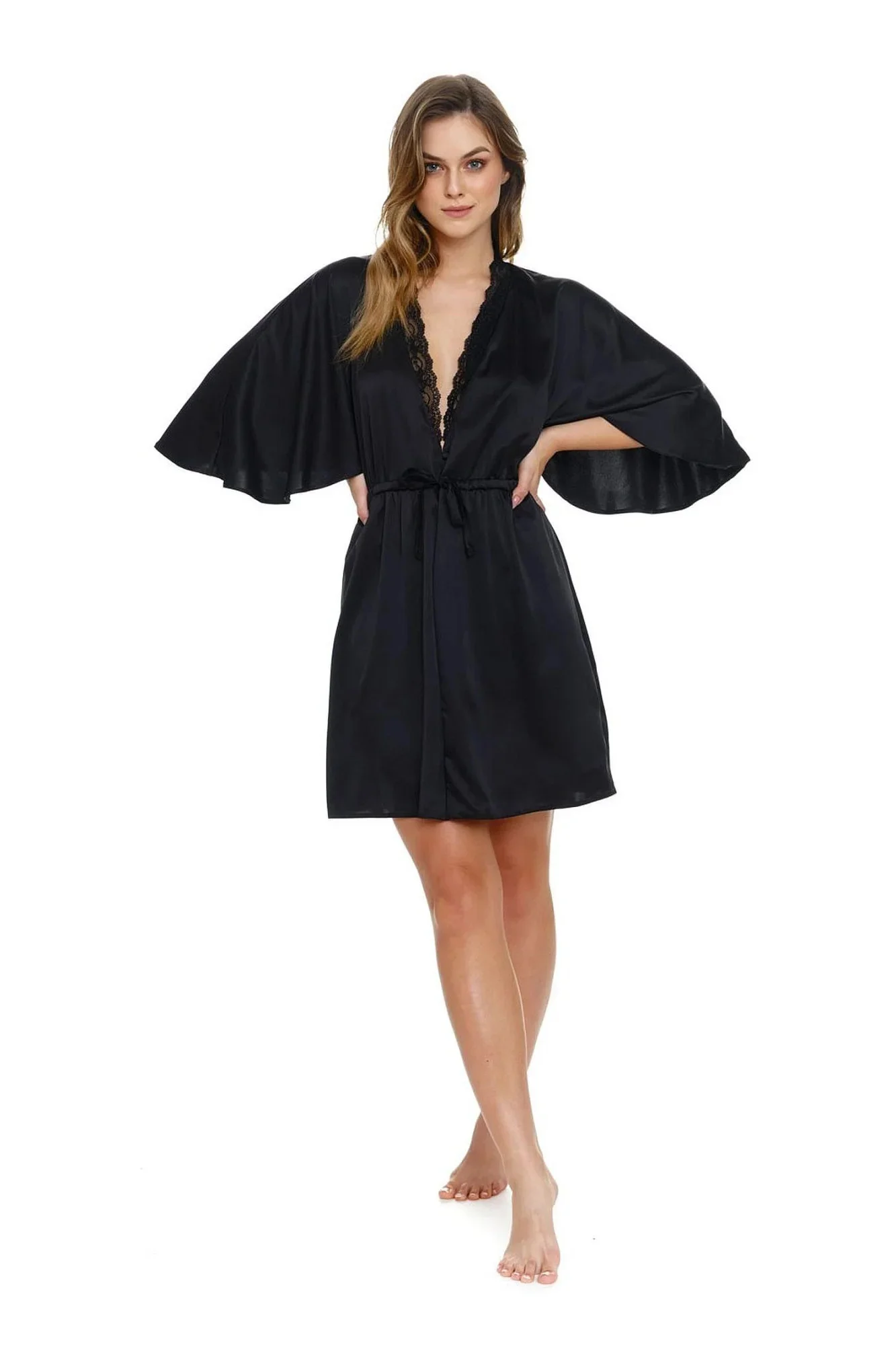 Dámský župan 5102 Doctor nap - vyrobené z velmi kvalitního a příjemného materiálu - černá barva - zdobený krajkovou vsadkou - délka nad kolena