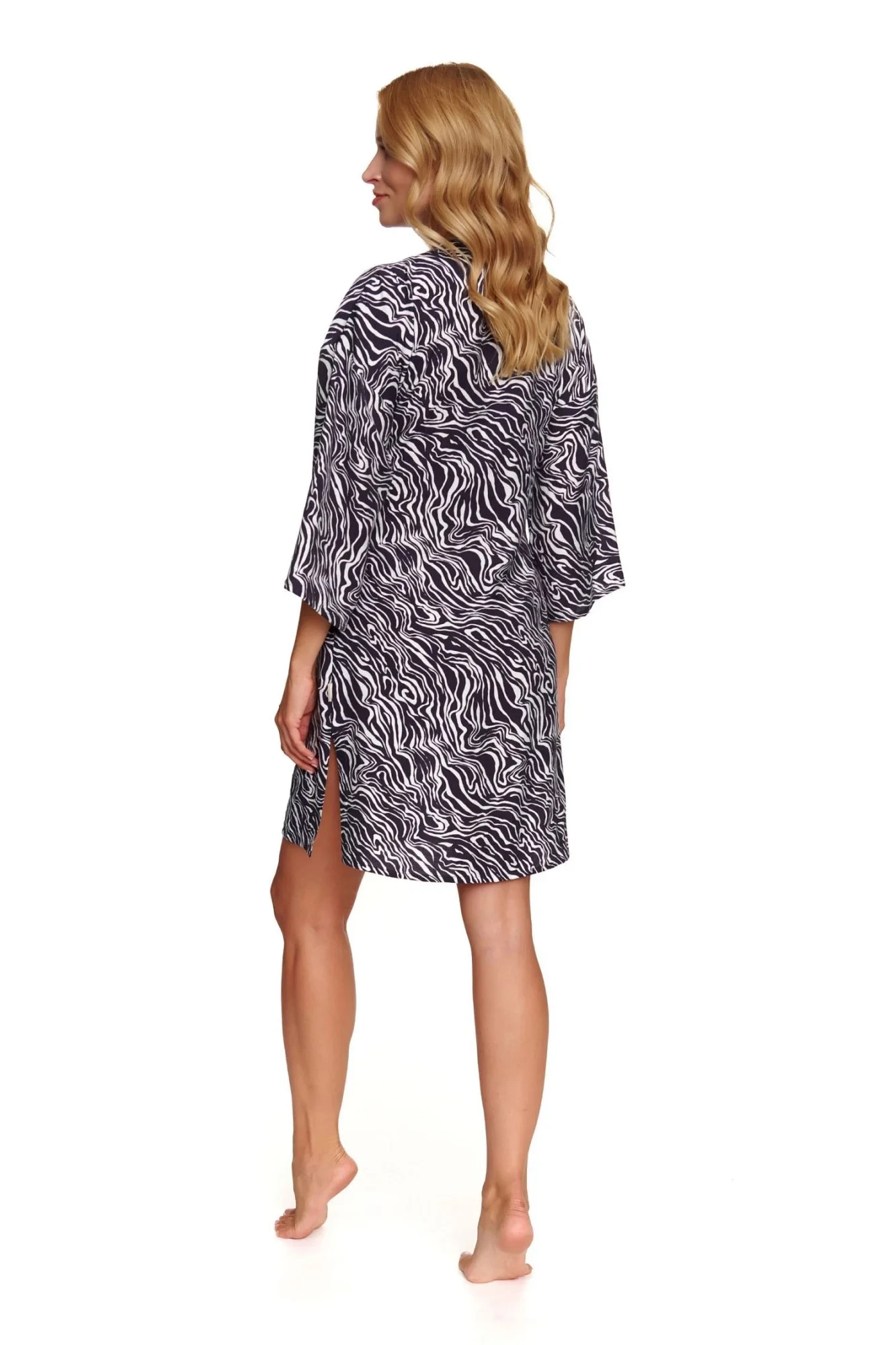 Dámský župan 7169 grey Doctornap - grafitová barva - z vysoce jakostní viskózy - se vzorem - tříčtvrteční rukávy - pohodlné kapsy na bocích - zavazování na pásek