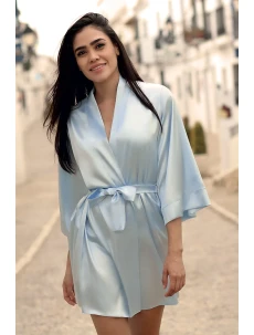 Dámský župan z kvalitní viskózy 94% a příměsí elastanu. Dlouhý, na zavazování kolem pasu, rukávy 3/4.