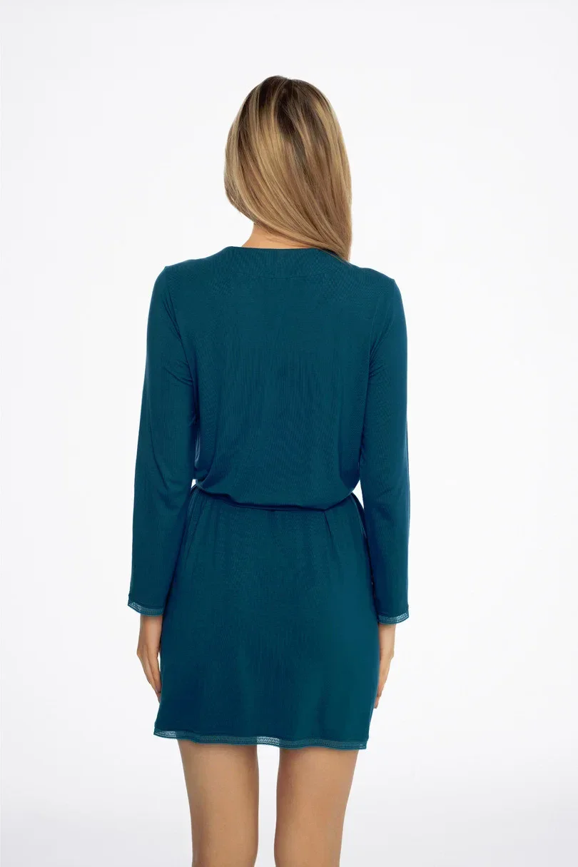 Župan Alena je vynikající volbou provšechny milovníky minimalismu. Tělo příjemně zahalí zajímavý odstín. Jemné zakončení okrajů a hluboký výstřih dodávají šatům smyslný půvab. Župan s dlouhými rukávy, zavazování v pase, spodní část a rukávy zdobené krajkou. K dispozici ve dvou barvách.