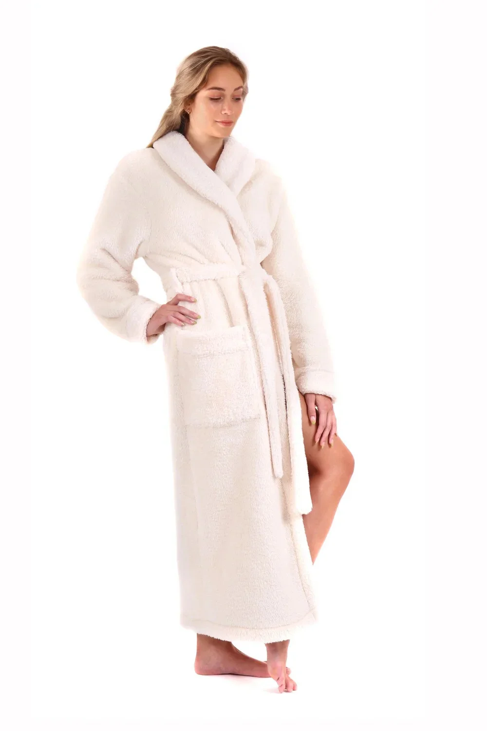 Použitý materiál má dlouhý hustý vlas, lícová strana je jemně lesklá, rubová strana pak připomíná ovčí kožešinu a spolu tvoří elegantní kombinaci, která vynikne na lemech kapes a rukávů a na velkém šálovém límci. Dvě prostorné nakládané kapsy pojmou všechny důležité drobnosti, bez nichž se neobejdete. Převázáním pak uzpůsobíte obvod županu vašim potřebám. Materiál je mírně pružný a díky své měkké a husté struktuře poskytuje skvělé izolační vlastnosti. Udržuje teplo a zároveň je prodyšný.