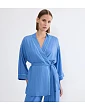 Tento krátký župan kombinuje pohodlí s propracovaností. Navržen s plynulým padnutím, tento zavinovací župan má 7/8 kimono rukávy a matching pásek. Propracované lemování dodává celkovému designu nádech rafinovanosti. Vyroben z měkkého, plynulého materiálu s pruhovaným lesklým a matným žakárovým vzorem.