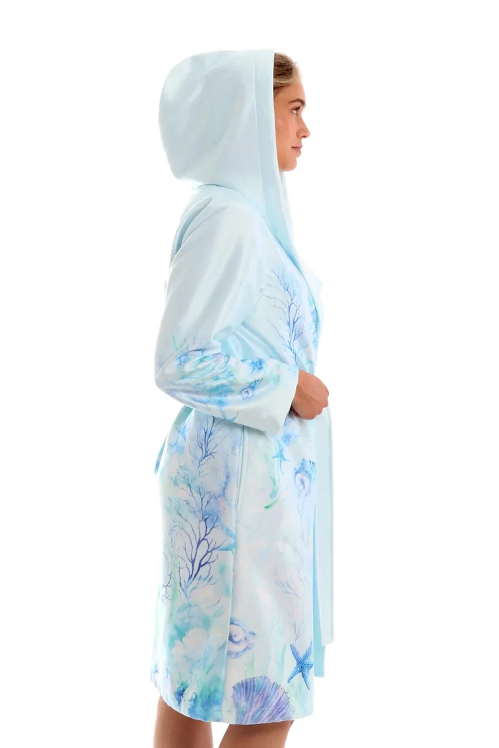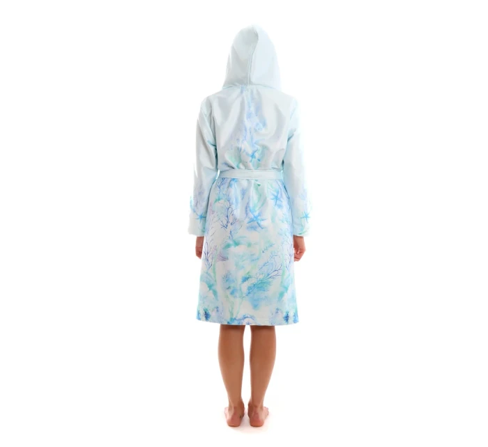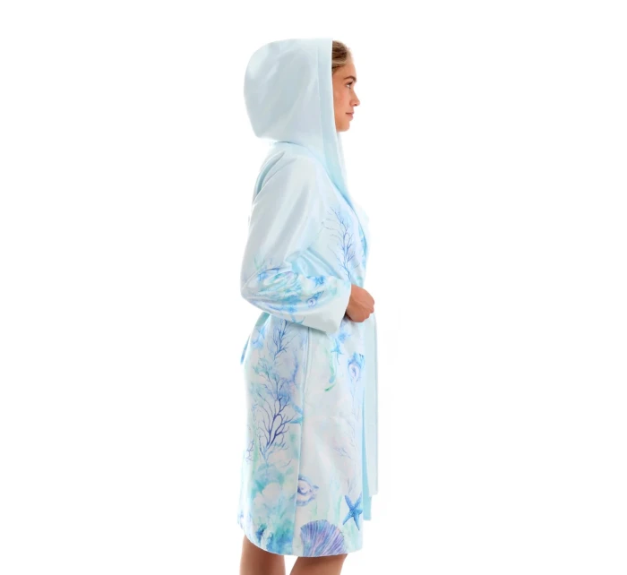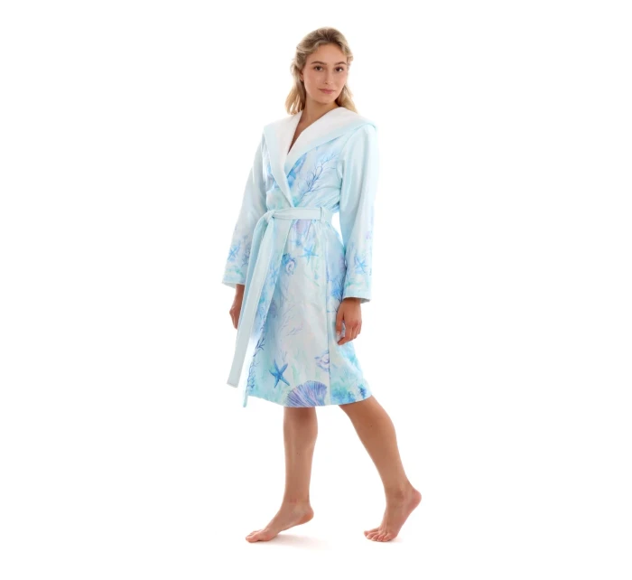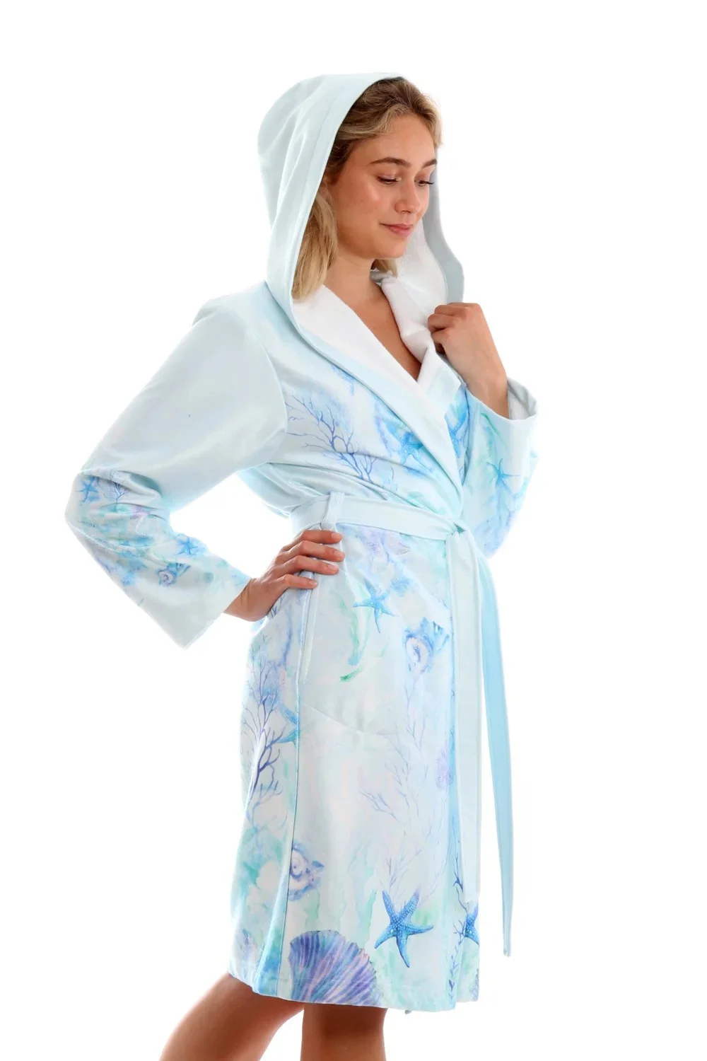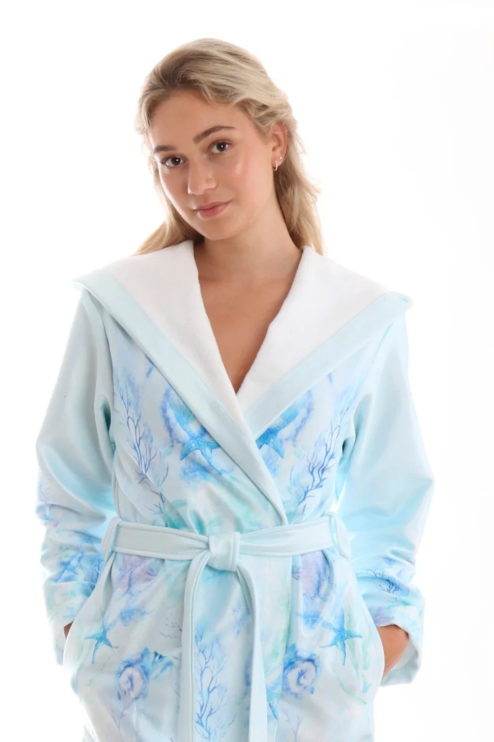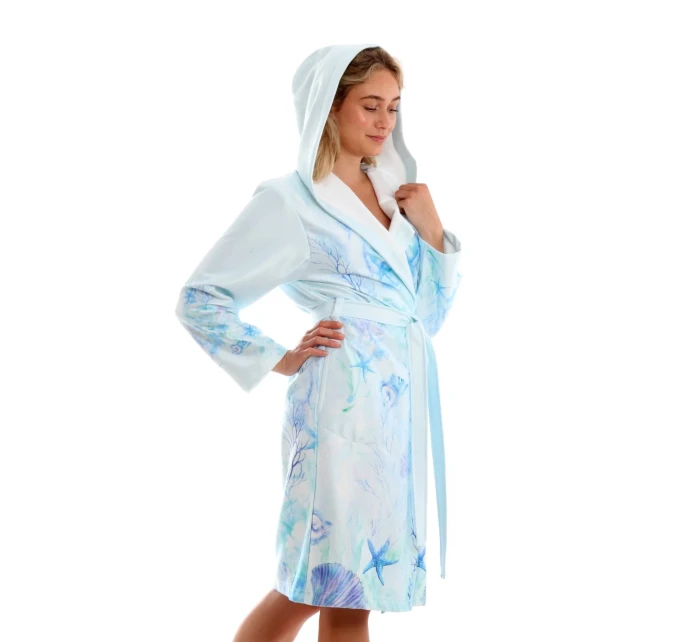 ANJU elegantní dámský župan s kapucí s krásným digitálním potiskem na téma mořský svět.