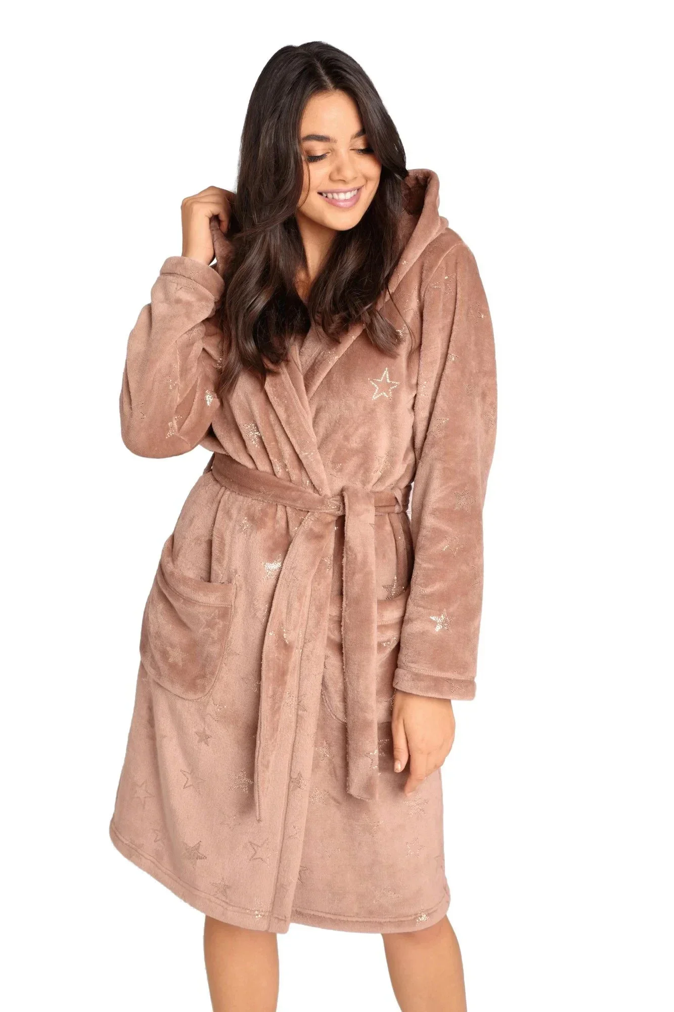Dámský župan Arte plus ITALIAN FASHION - béžová barva - vázání v pase - kapsy na bocích - příjemný a lehký materiál