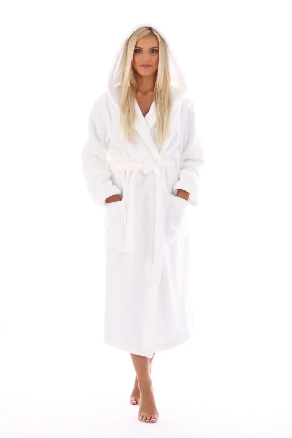 Sportovní unisex střih s kapucí, prostornými kapsami a páskem na převázání má klasickou délku. Kapuce pomůže osušit vlasy a zároveň ochrání krční partie v chladném prostředí. Idální pro wellness, kde přecházíte mezi vířivkou nebo bazénem a vnitřními prostory.