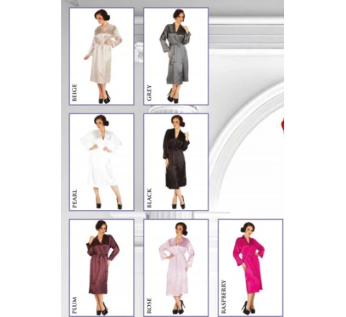 Elegantní dámský župan z jemného saténu. Dlouhé rukávy, pásek na zavazování. Materiál poskytuje měkkost na vnitřní straně a vysoký lesk na vnější straně. Celková délka měřená od ramenního švu je cca 115 cm. Župan je zabalen v elegantním dárkovém balení, může být ideálním dárkem pro někoho výjimečného.