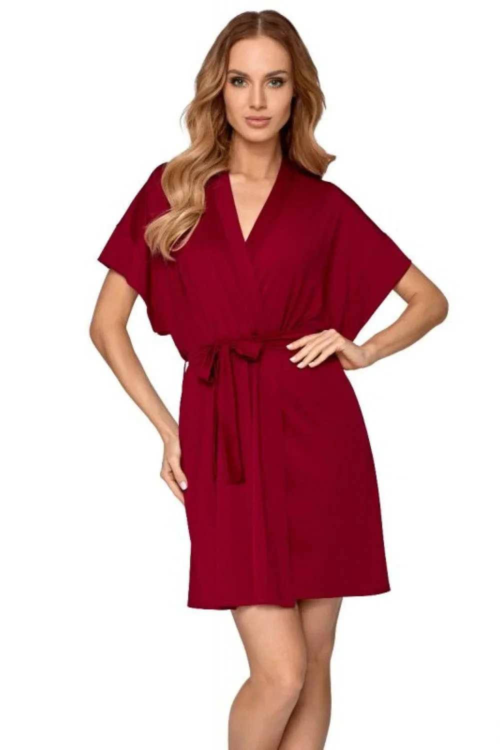 Dámský župan Corina Babella - vínová barva - materiál příjemný na dotek - volnější rukávy - zavazování na pásek - délka ke kolenůmMateriálové složení: 94% viskóza + 6% elastan