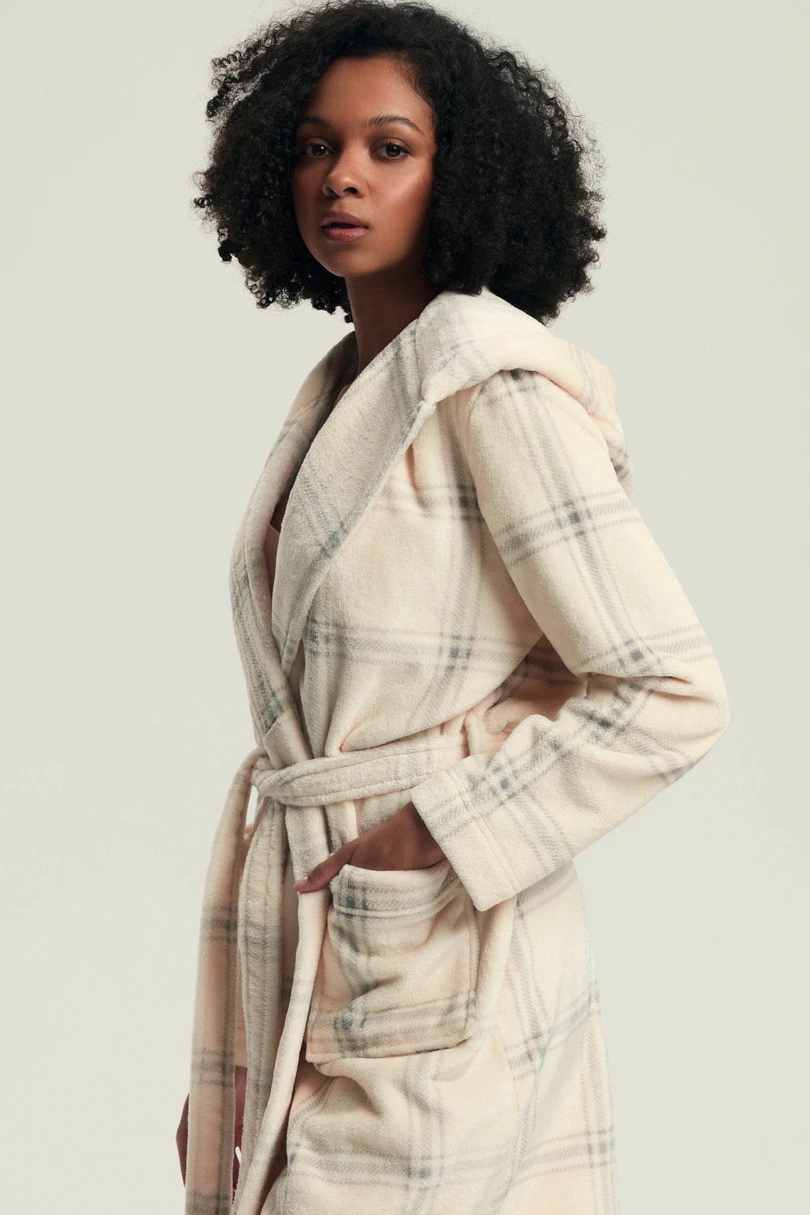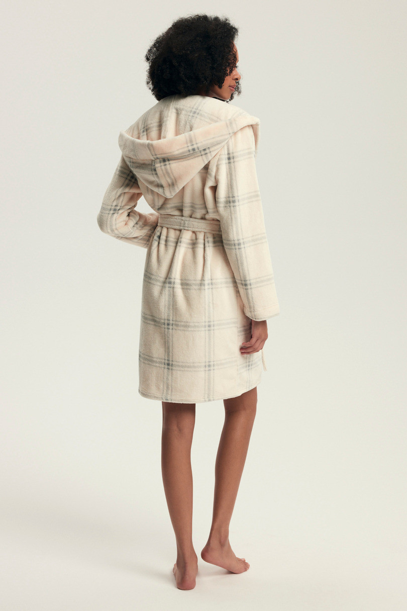 Otul się komfortem z szlafrokiem damskim DANNA 43596 AW25 od HENDERSON LADIES. Wykonany w 100% z miękkiego poliestru, gwarantuje przyjemne ciepło i puszystą fakturę, która doskonale sprawdzi się po kąpieli, rano lub podczas relaksu w domu. Stylowa, pastelowa krata dodaje mu subtelnego uroku, a funkcjonalne kieszenie i obszerny kaptur zwiększają wygodę noszenia. Wiązanie w pasie pozwala na idealne dopasowanie do sylwetki. To niezastąpiony element garderoby na chłodniejsze dni, który łączy elegancję z praktycznością.