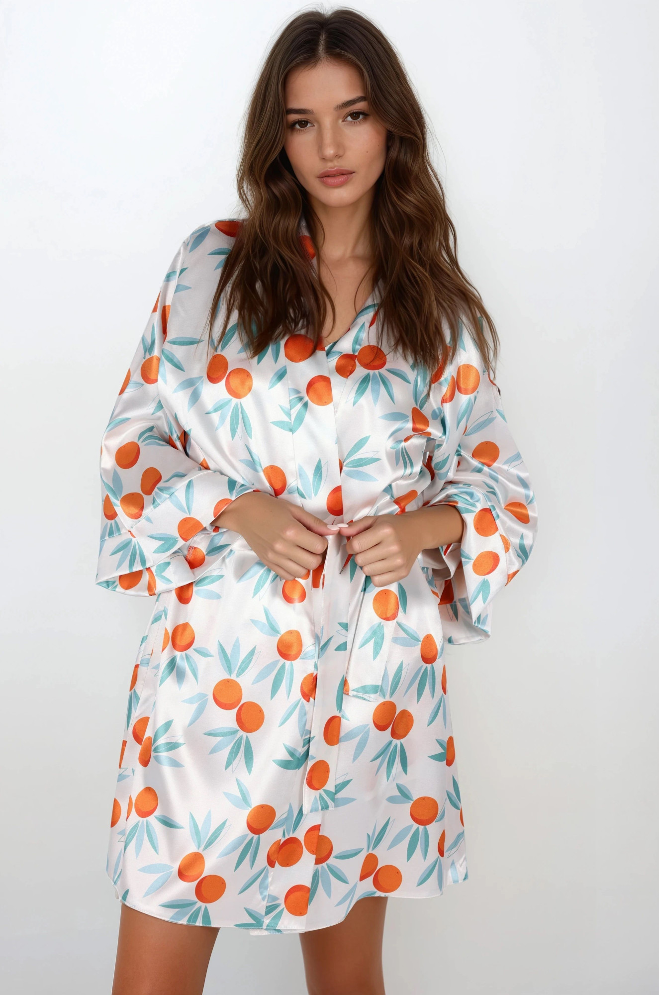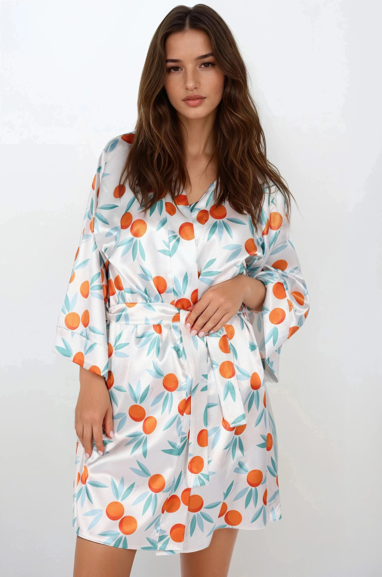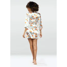 Máte chuť na špetku exotiky a středomořské léto po celý rok? - objednejte si tuto krásnou saténovou košilku (negližé). Je měkký a saténový, zavazuje se v pase a skvěle se hodí do vašich domácích lázní. Složení: 100% polyester.