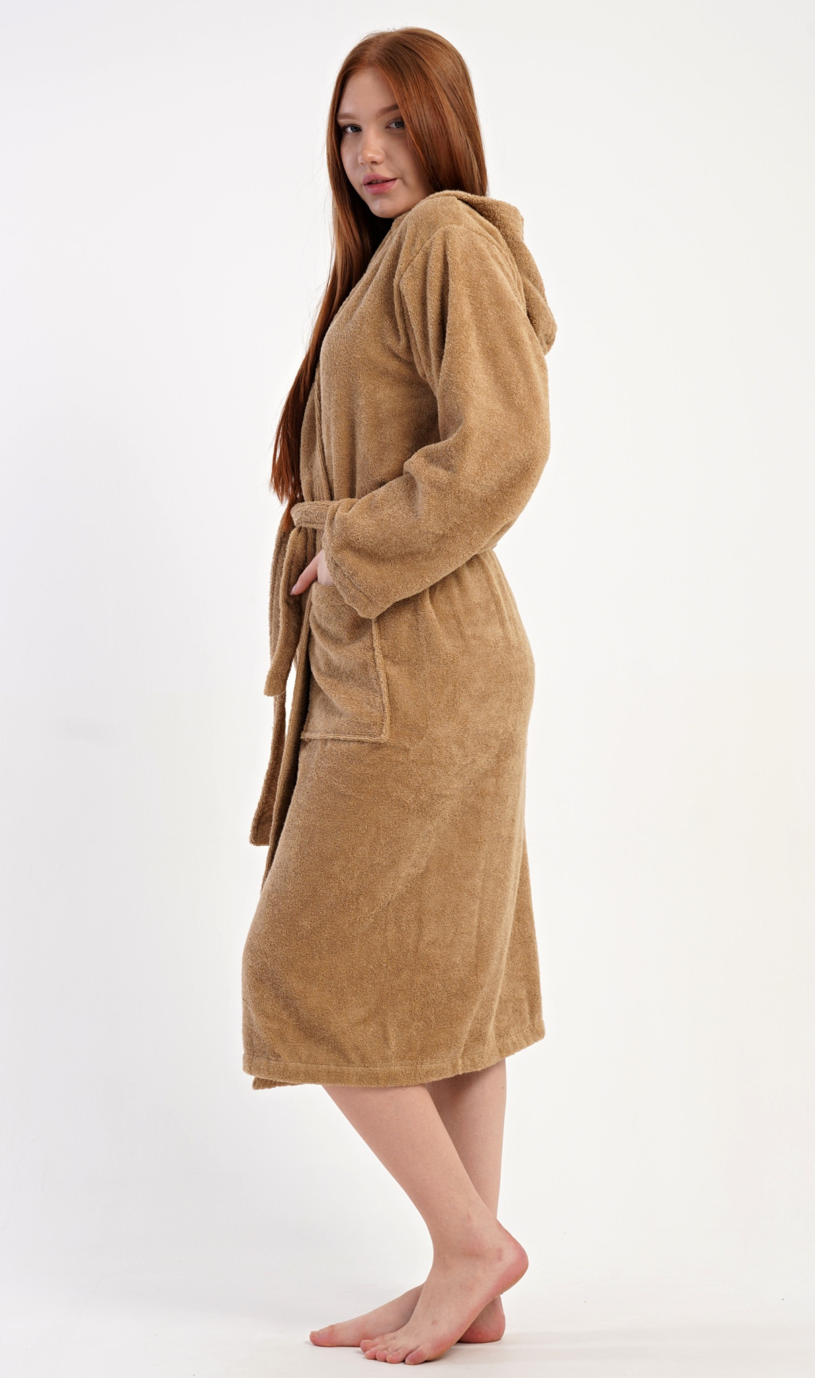 Dámský župan dlouhý s kapucí Karamelka