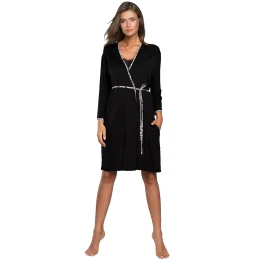 Dámský župan Eila ITALIAN FASHION - černá barva - je vyrobený z velmi kvalitního materiálu - s dlouhými rukávy - zavazování na pásek v leopardím vzoru - na bocích jsou kapsy - délka nad kolena