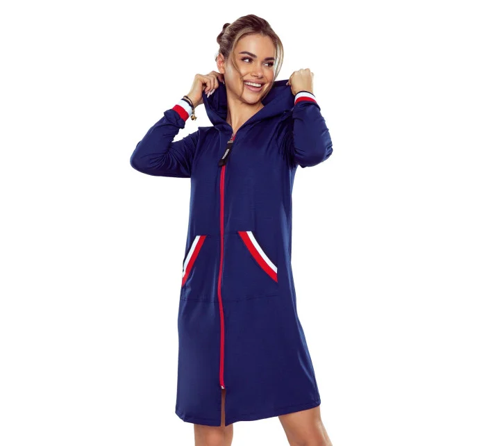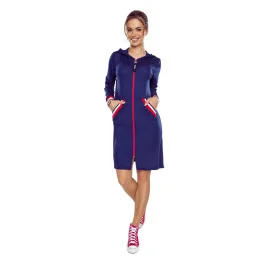 Dámský župan Enia blue ELDAR - tmavě modrá barva - z vysoce jakostní bavlny - dlouhé rukávy - zapínání na zip - kapsy - manžety rukávů a kapsy zakončené barevným stahujícím lememMateriálové složení: 70% bavlna + 25% polyester + 5% elastan