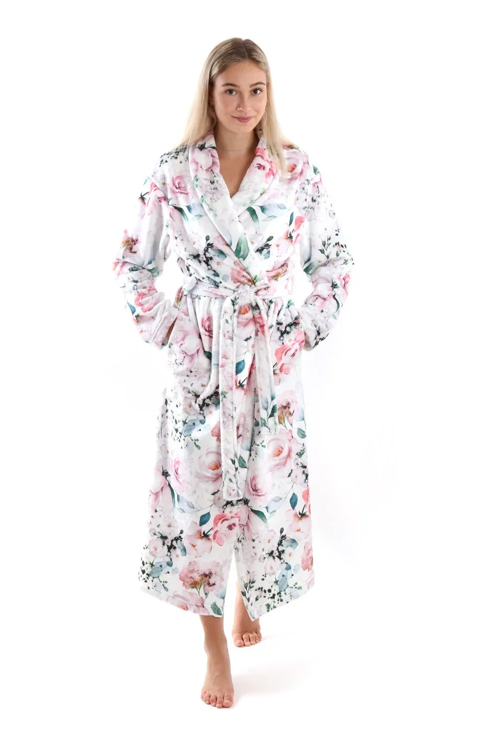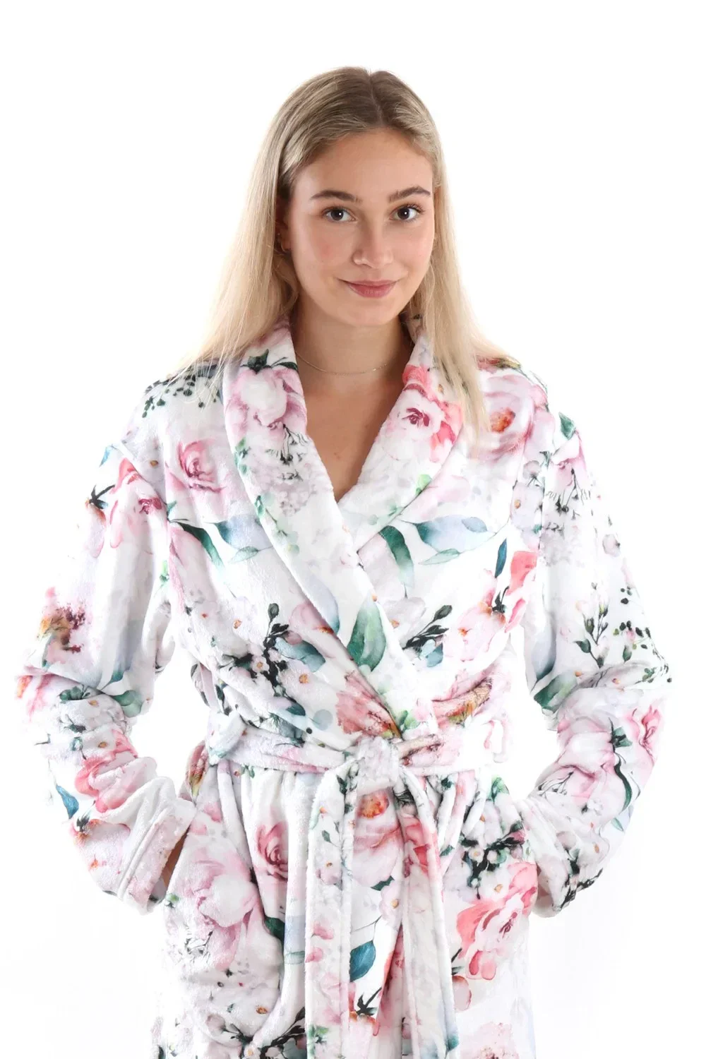 Župan Fiora z řady Secret Garden je lehký, příjemně hřejivý, dlouhý dámský župan s něžným vzorem s motivem rozkvetlé růžové zahrady. Jemné květy růží se skvěle doplňují se sametovým povrchem materiálu flannel fleece na kterém jsou natištěny. Nechte se hýčkat některým z modelů řady Secret Garden a poznejte jejich hedvábně jemný omak a pohodlný střih pro dokonalý pocit pohodlí a relaxace.