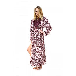 Pohodlný hřejivý dlouhý župan pro ženy FLORA - v bílo tmavě fialové barvě se vzorem vřesu.