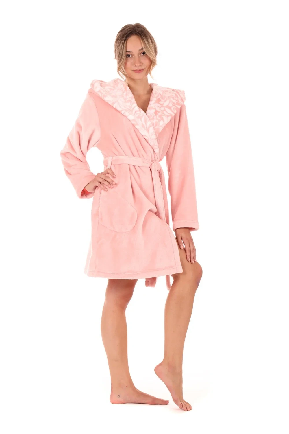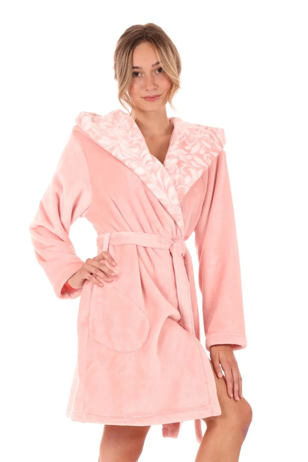 Dámský župan Flora s kapucí krátký 4856 3050 růžová perla - Vestis