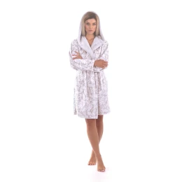 Dámský župan Flora s kapucí krátký 4856 vzorovaný dove grey - Vestis