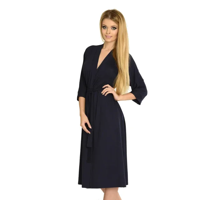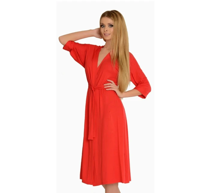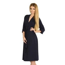 Dámský župan z kvalitní viskózy 94% a příměsí elastanu. Dlouhý, na zavazování kolem pasu, rukávy 3/4.