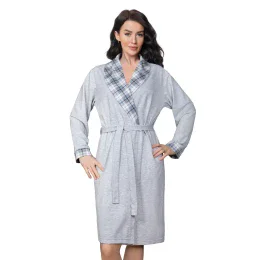 Dámský župan s šálovým límcem ušitý z bavlny, Dlouhý rukáv, zavazování v pase.