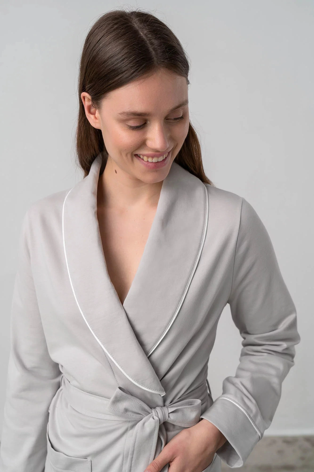 Elegantní jednobarevný župan pro pocit lehkosti a krásy. Župan je vyrobený z vysoce kvalitní přírodní egejské bavlny, která poskytuje vysoké pohodlí, příjemný pocit na dotek, prodyšnost, pružnost a odolnost.