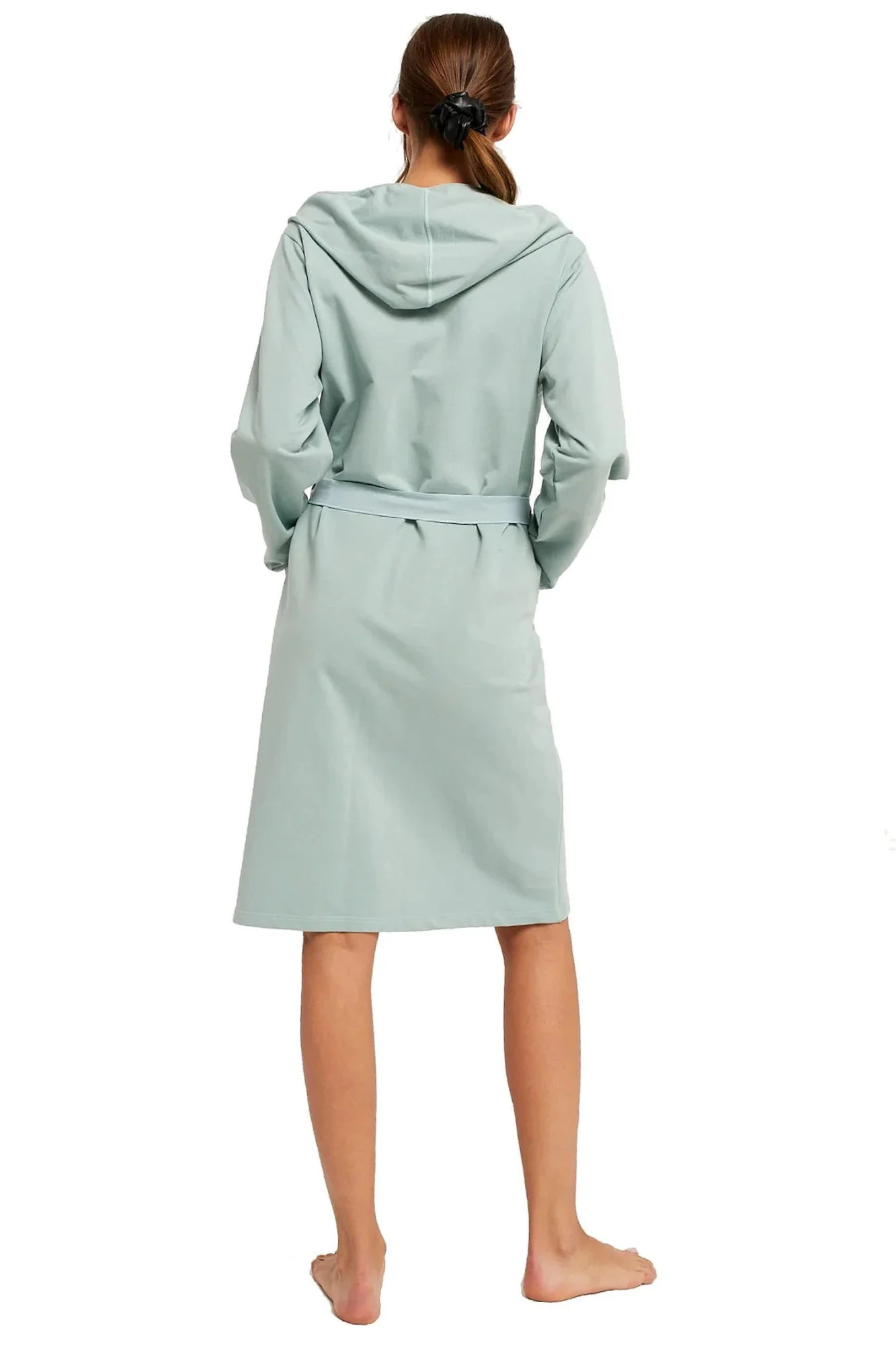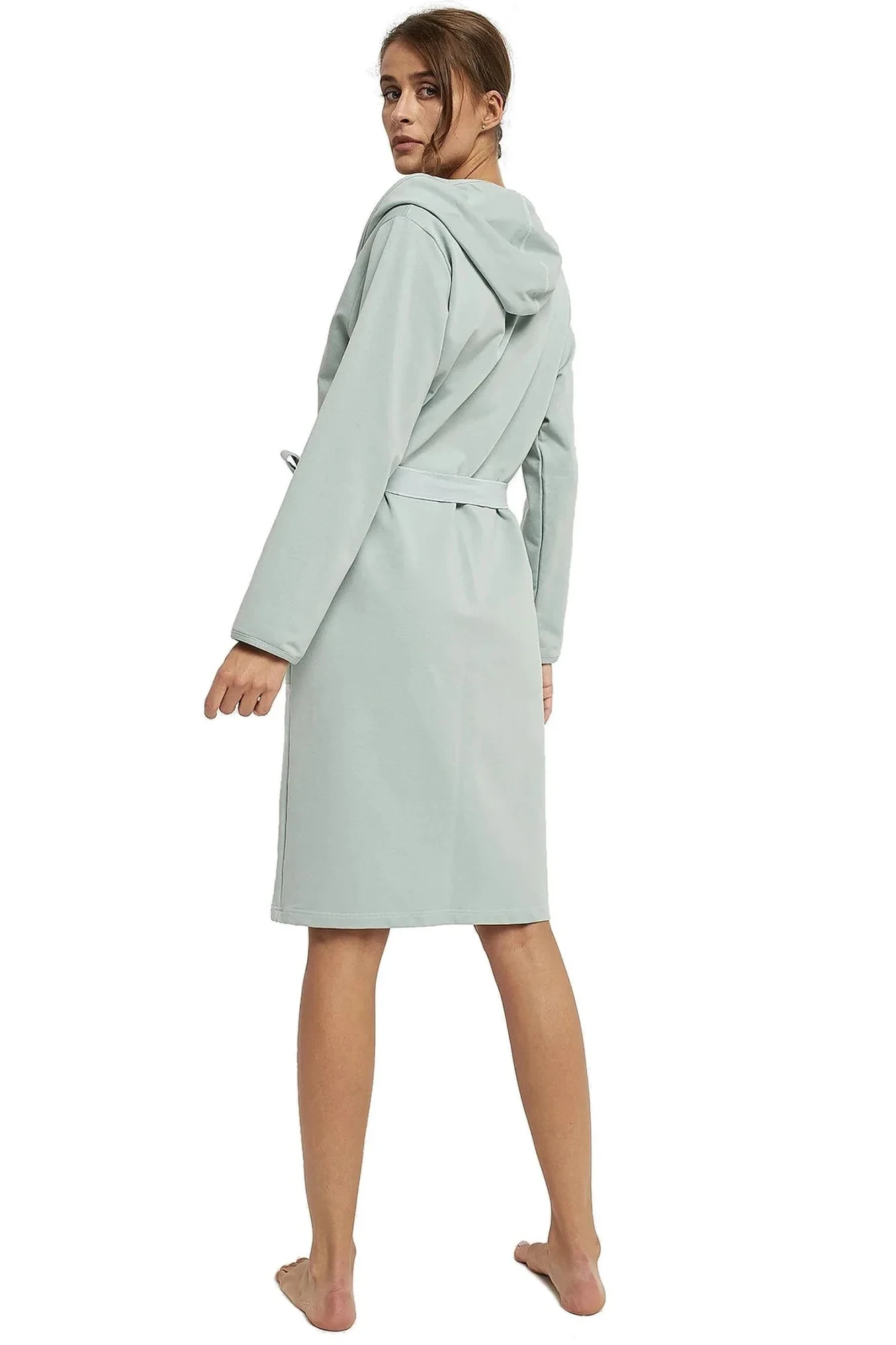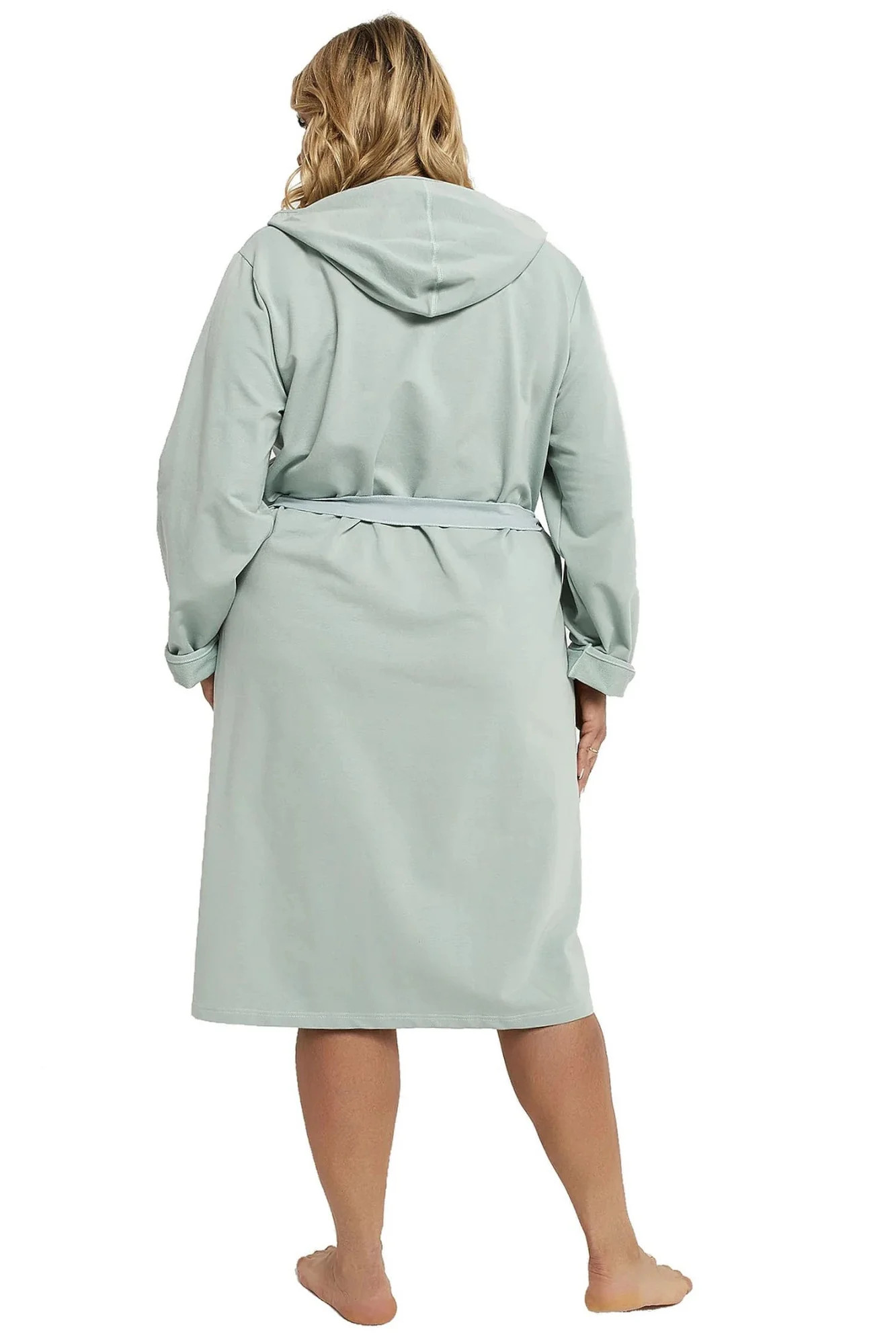 Dámský župan Karina mint plus ITALIAN FASHION - mátová barva - je vyrobený z velmi kvalitní teplákové bavlny - s dlouhými rukávy - zavazování na pásek v pase - na bocích jsou kapsy - s kapucí - délka nad kolena