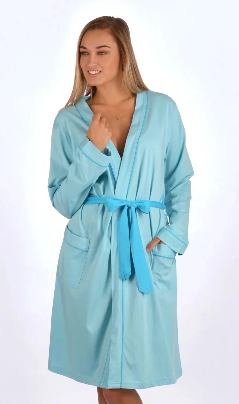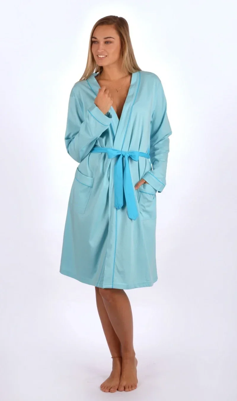 Dámský krátký bavlněný župan Adélka. Dámský župánek s tříčtvrtečním rukávem a délkou pod kolena je potišten drobnými puntíky. Župan má pásek ke stažení a praktické kapsy. Použitý bavlněný materiál je příjemný a poddajný na dotek, saje a oceníte ho i po koupeli.