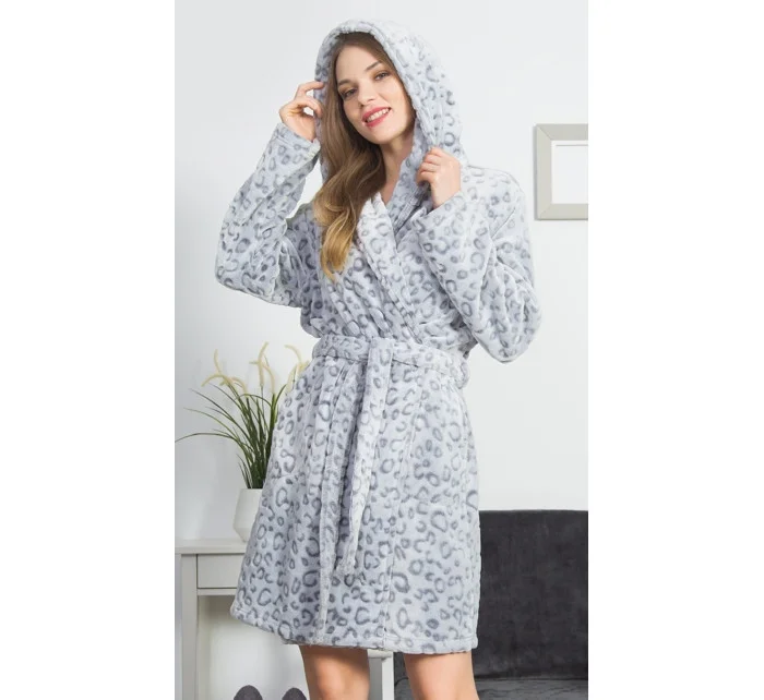 Dámský župan krátký s kapucí Leopard grey