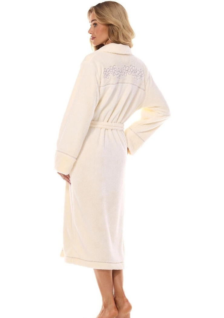 Dámský župan s kapucí značky L&L. Župan je dlouhý pod kolena. Na bocích jsou zapuštěné kapsy. Župan lze okolo pasu uvázat páskem. Župan je velmi příjemný na dotek.