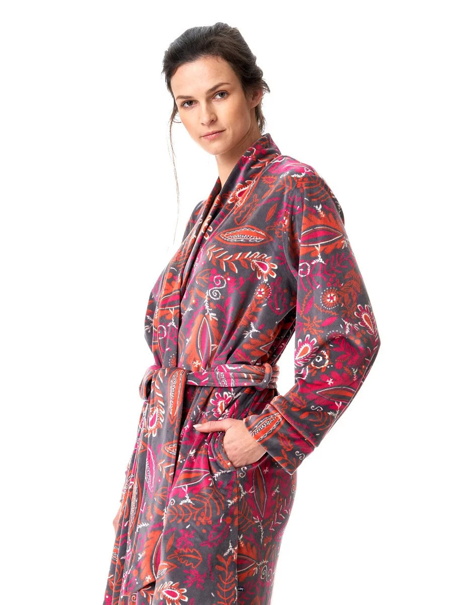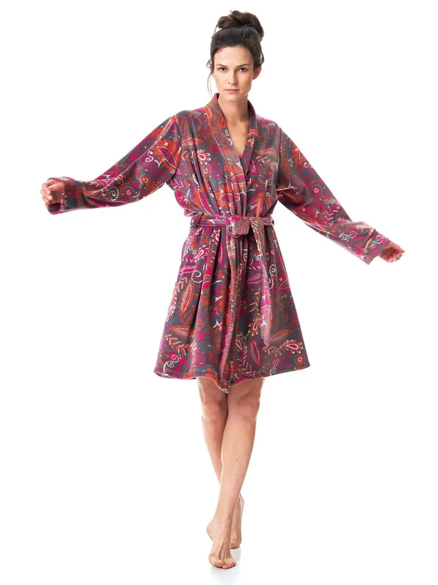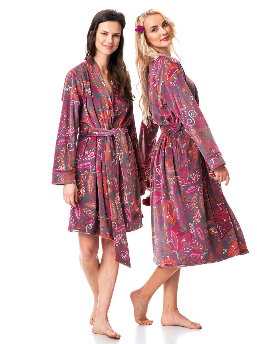 Produkt Dámský župan LGD 782 B23 Šedo-růžovo-červený - Key prodáváme v těchto velikostech: XLa barvách šedo-růžová5904765663195