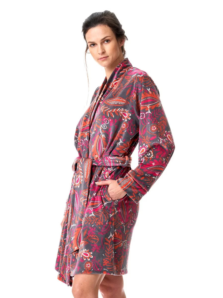 Dámský župan LGD 782 B23 Šedo-růžovo-červený - Key