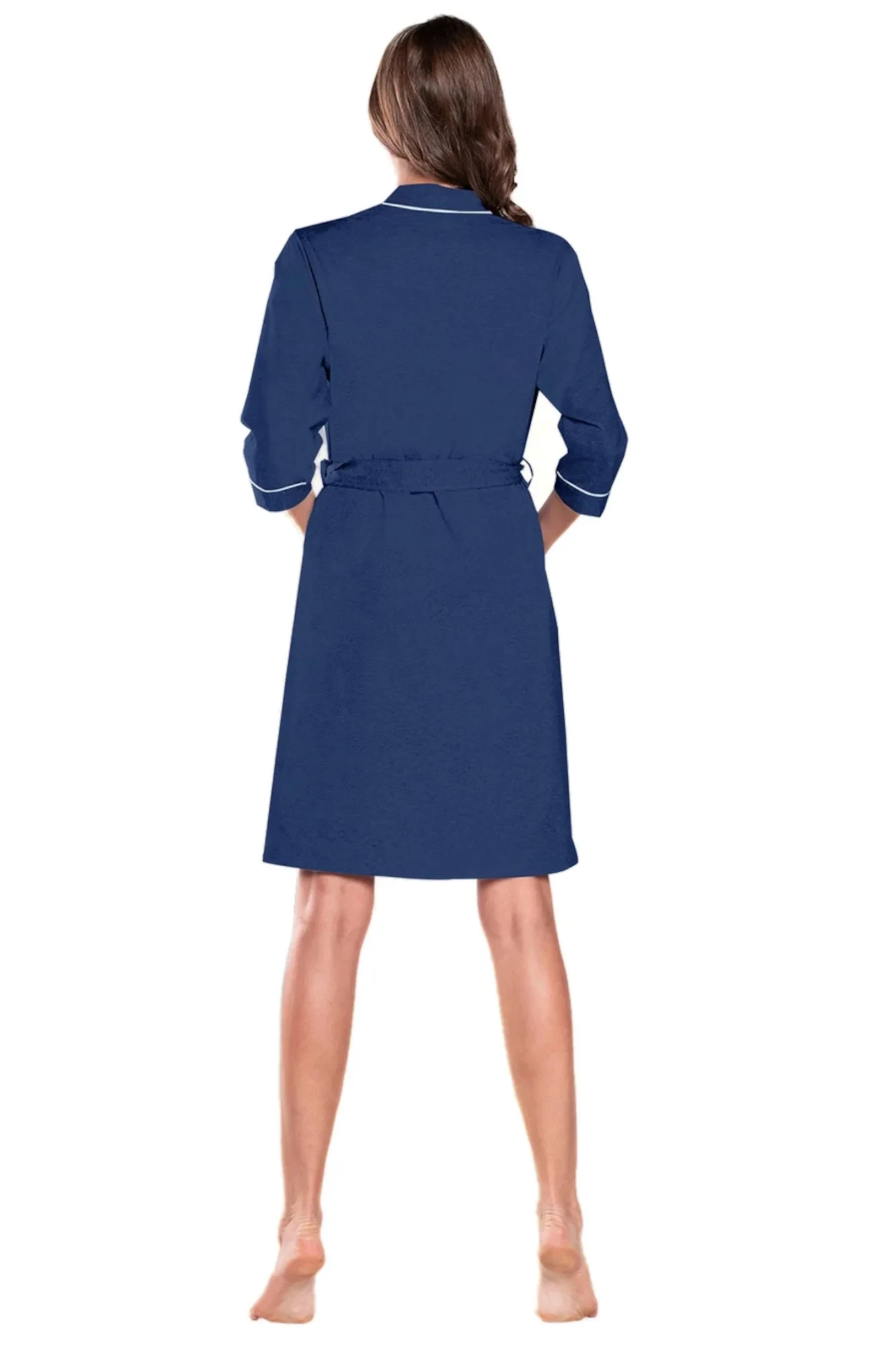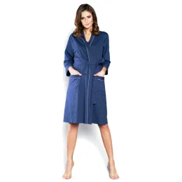 Dámský župan Megan blue ITALIAN FASHION - tmavě modrá barva - vyrobené z velmi kvalitní a příjemné bavlny - tříčtvrteční rukávy - vázání v pase - kapsy na bocích