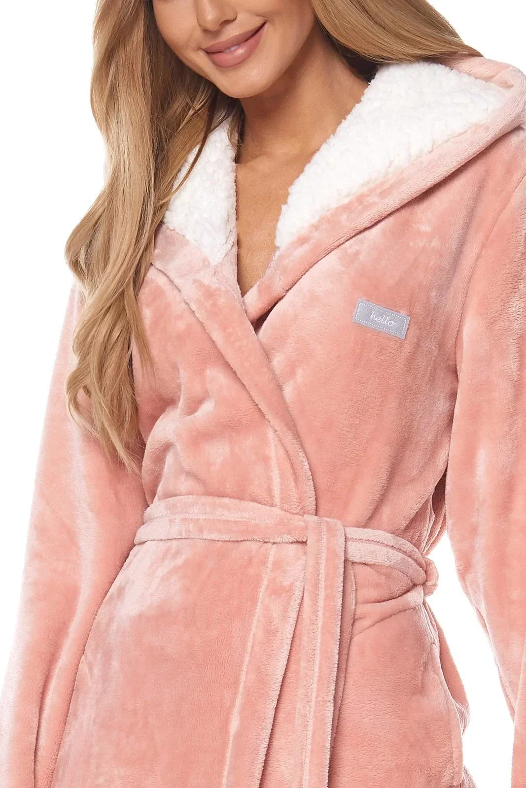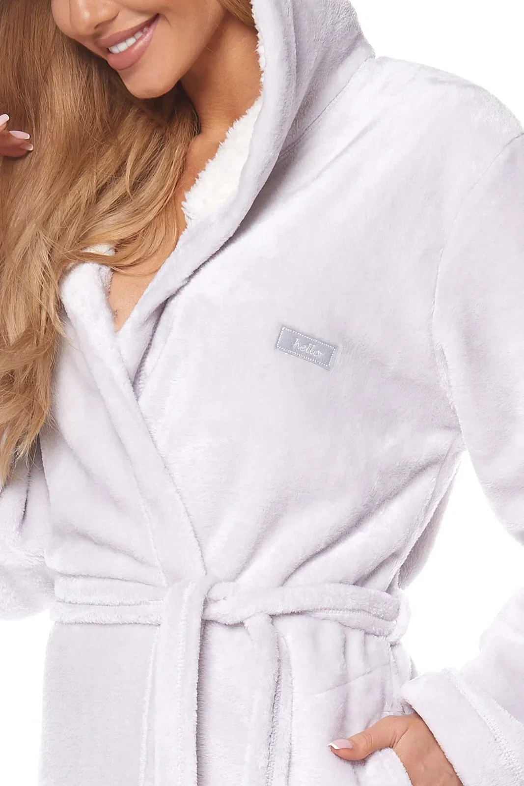 Pohodlný krátký dámský župan, který je vyrobený z měkké a příjemné tkaniny.