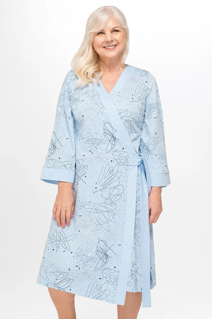 Dámský zavazovací župan se 3/4 kimonovými rukávy.