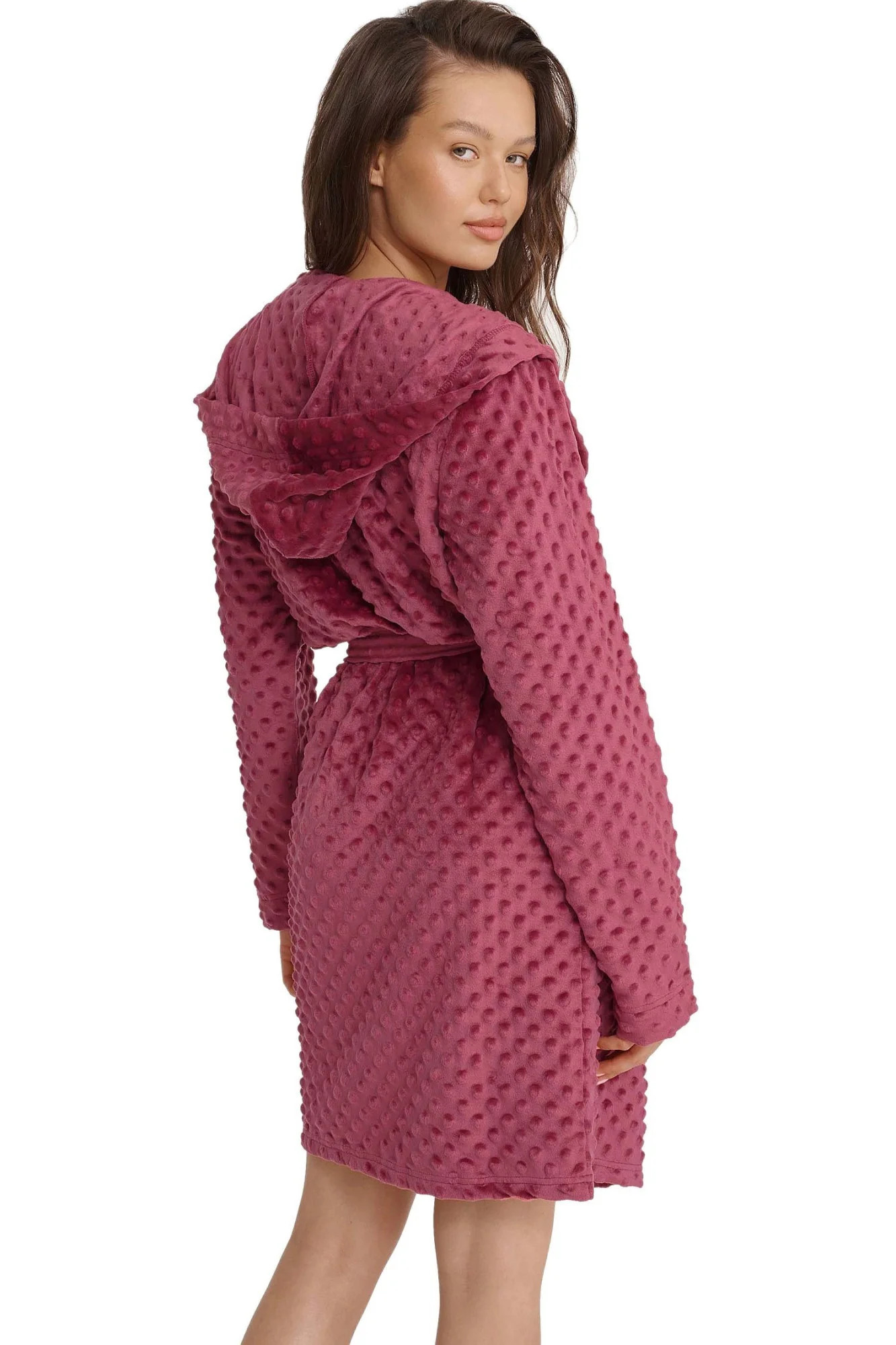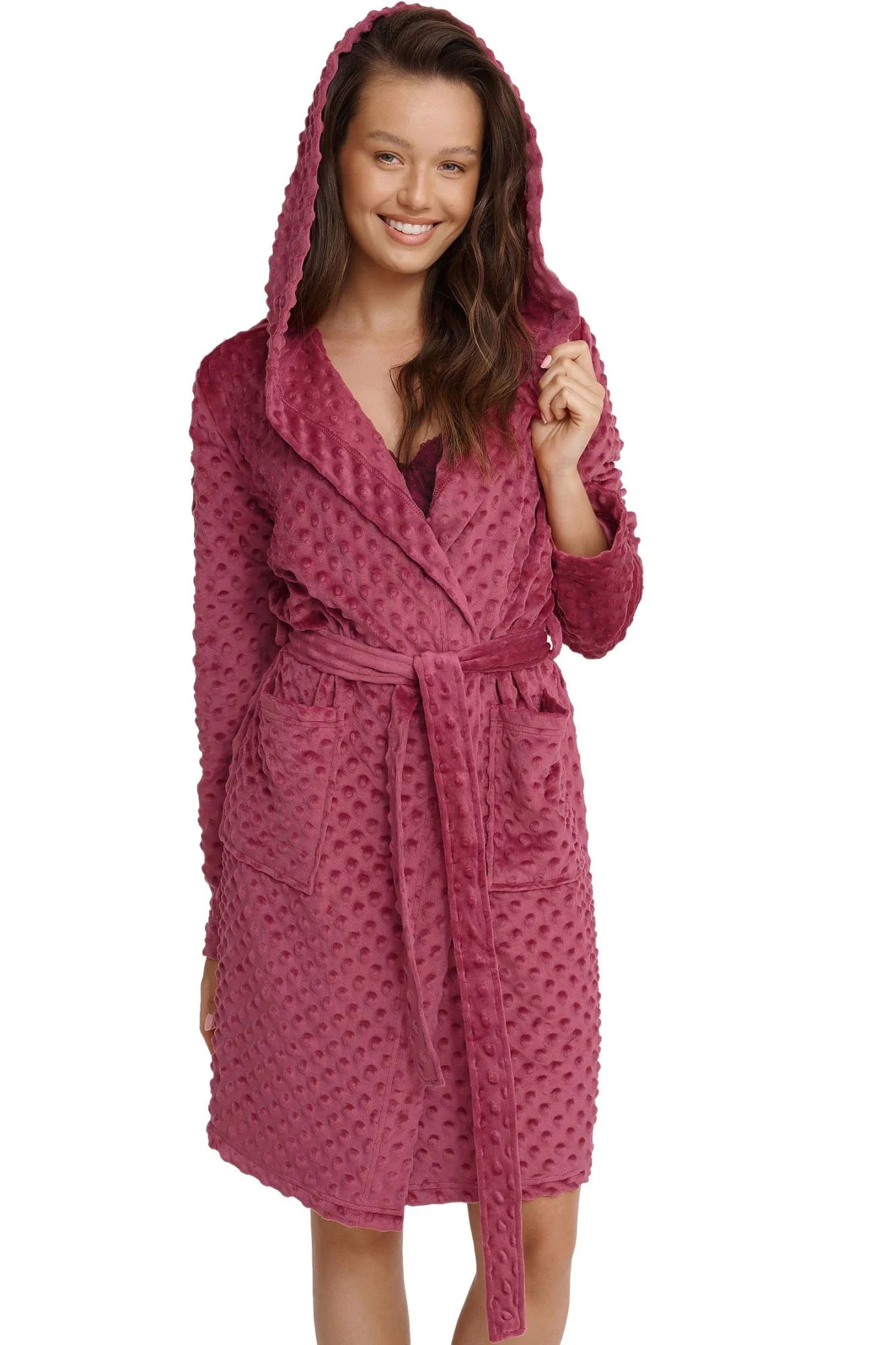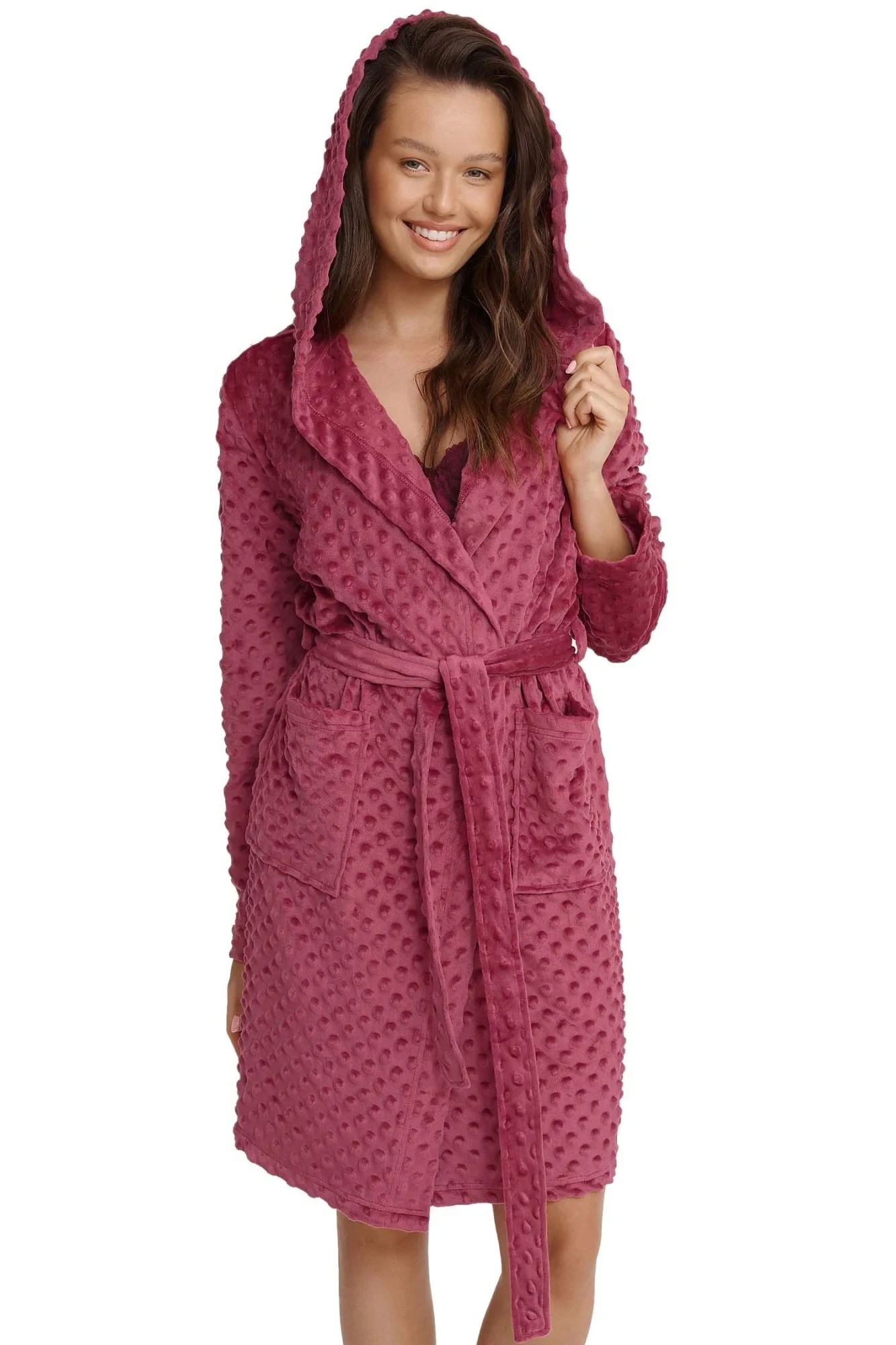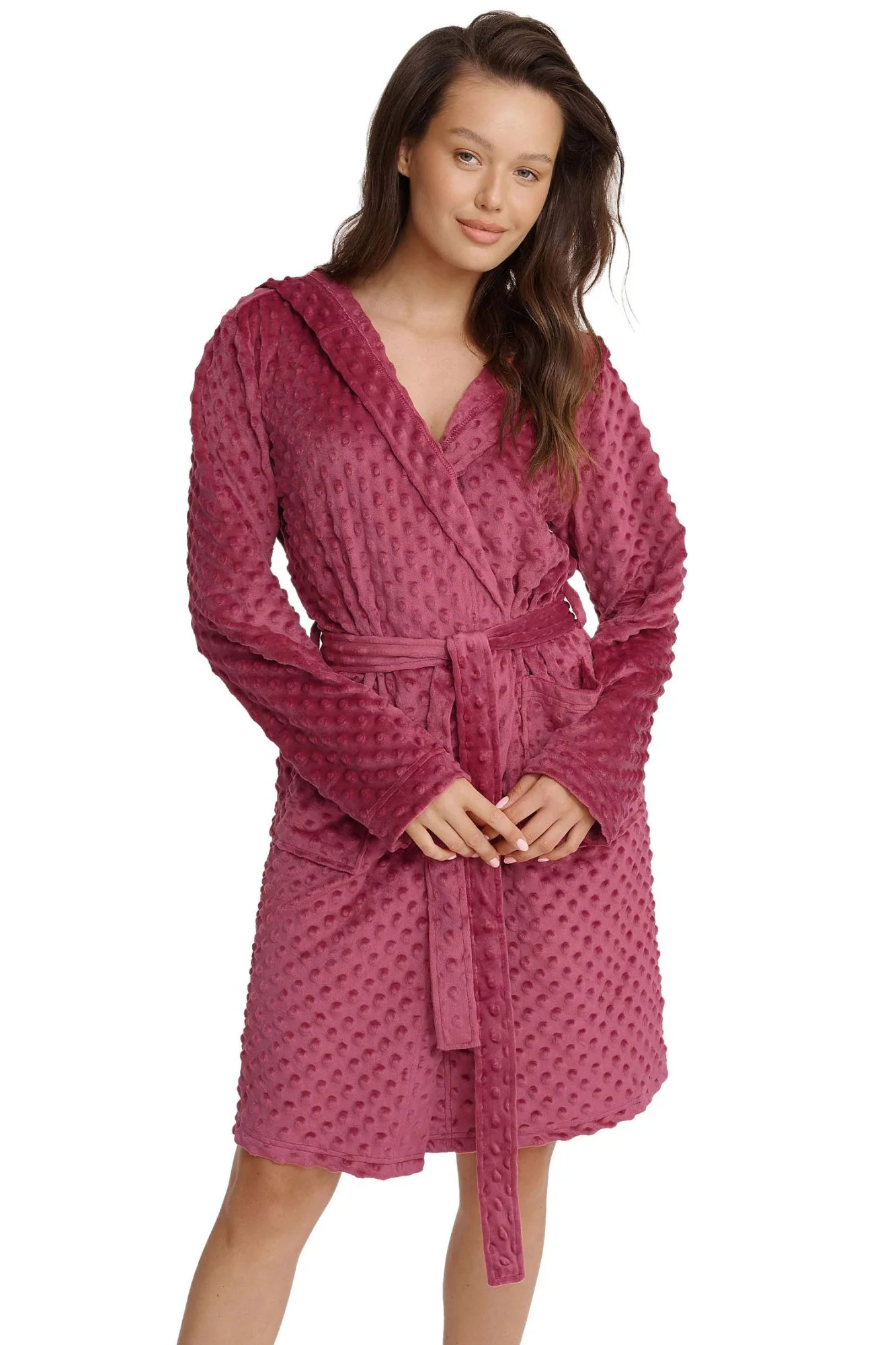 Dámský župan s kapucí značky Henderson. Župan je dlouhý nad kolena. Na stranách jsou našité kapsy. Župan lze okolo pasu uvázat páskem, který drží na přišitých poutkách. Župan je velmi příjemný na dotek.