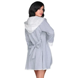 Dámský župan Jayanti Livco - z šedého příjemného materiálu na dotek - obšití z kontrastních pásků - s dlouhými rukávy zakončené kontrastním lemem - zavazování na pásek - s kapucí - délka nad kolena