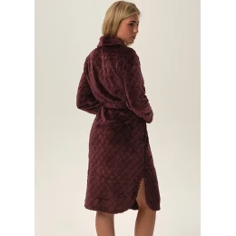 Hřejivý dámský župan s vyráženým vzorem od značky Henderson. Župan má šálový límec a v pase je na utažení. Délka sahá po kolena. Po stranách má dvě kapsy.