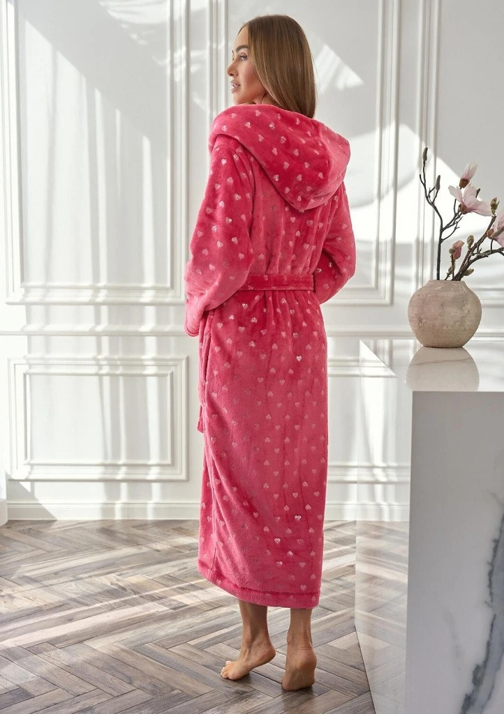 Dámský vzorovaný župan značky L&L. Župan je dlouhý pod kolena a na bocích má hluboké kapsy. Župan lze okolo pasu uvázat páskem. Župan je velmi příjemný na dotek.