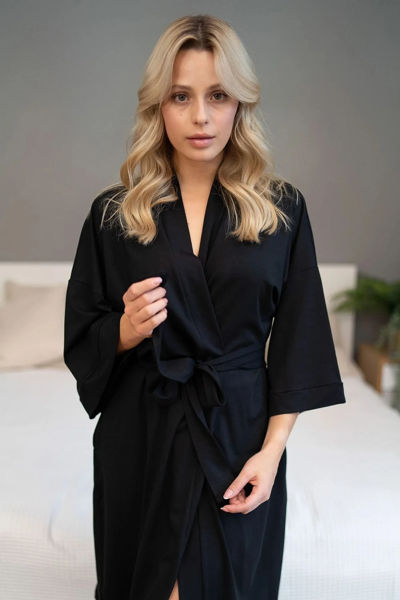 Dámský župan 9999 Doctor nap - vyrobené z velmi kvalitního a příjemného materiálu - černá barva - tříčtvrteční rukávy - na zavazování v pase - antibakteriální, protiplísňové a termoregulační vlastnosti - délka nad kolena