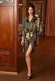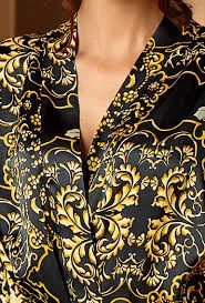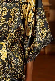 Dámský župan ALC2007 Lise Charmel- je luxusní černý župan s zlatými ornamenty, který působí velmi elegantním dojmem. Je vyroben z hedvábného materiálu , který se velmi příjemně nosí.