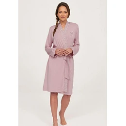 Dámský župan španělské značky Myudemi. Župan má okolo krku širší květovaný lem, který dále pokračuje podél okrajů županu až dolů. Mezi lemem a županem je našitý saténový pásek. Župan má v pase našitá poutka, kterými je provlečený pásek. Kapsy županu jsou zapuštěné na bocích. Délka županu je nad kolena. Rukávy županu jsou ukončené volně se širším lemem na kterém je našitý saténový pásek. Díky vysokému obsahu viskózy je župan velmi příjemný na nošení.