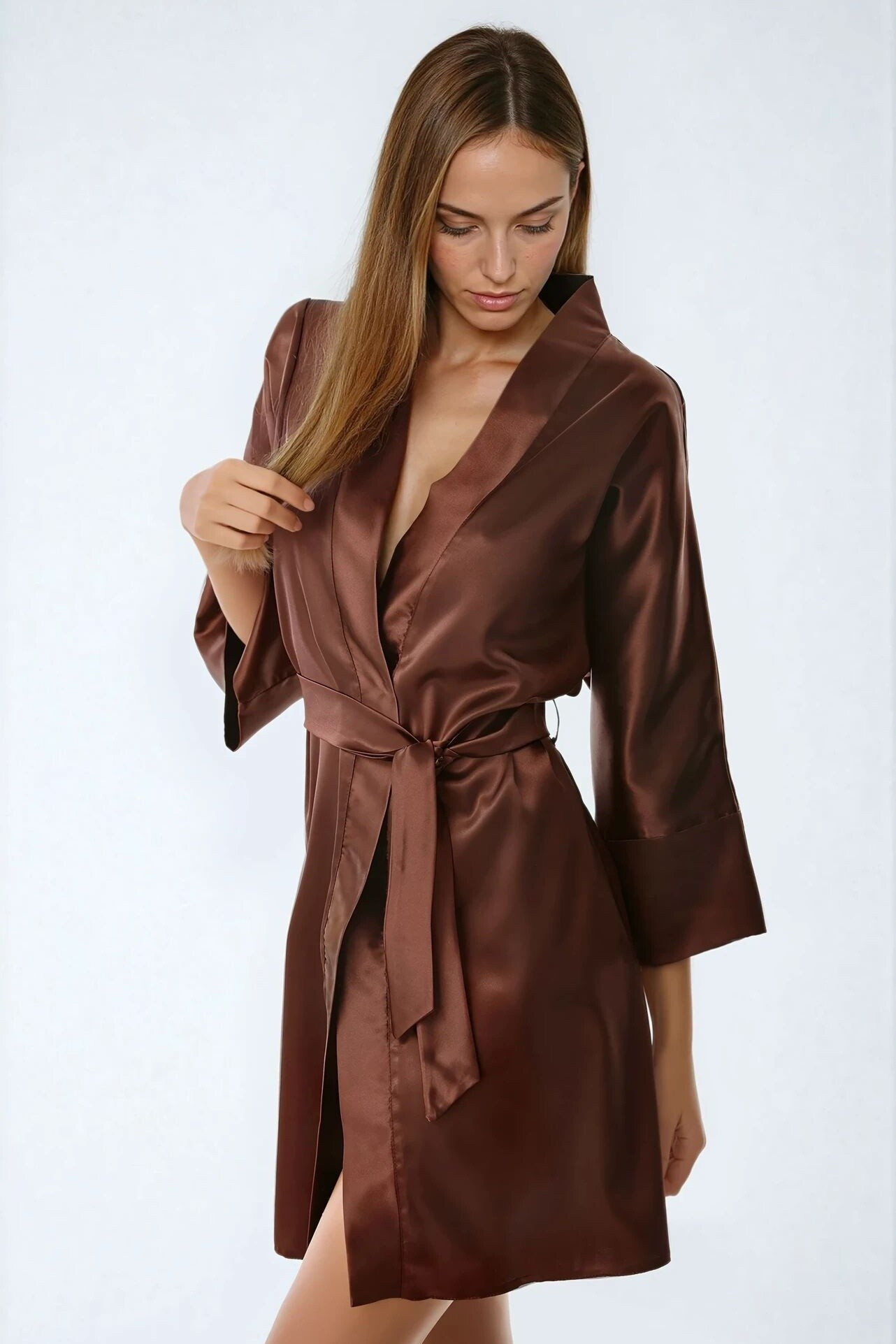 Krásný župan z jemného saténu je povinnou součástí šatníku každé ženy. Nenahraditelný v jakékoli situaci. Rukávy, které umožňují nosit je dvěma způsoby: s ohrnutými manžetami nebo s jednoduchým rukávem. Jednoduchý krátký saténový župan obdivuje svou elegancí. Panama je zabalena v elegantní velké krabici, takže pokud hledáte nápady na dárky - je to ideální řešení.