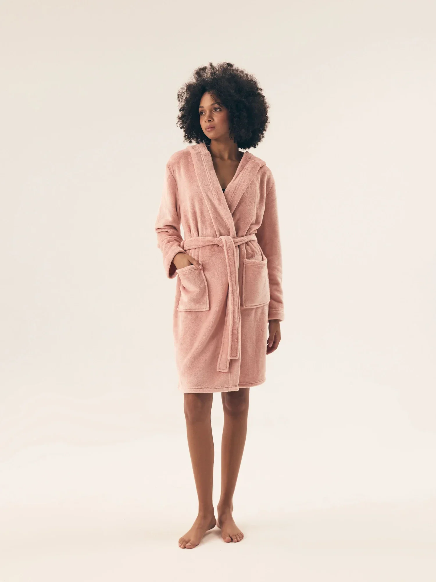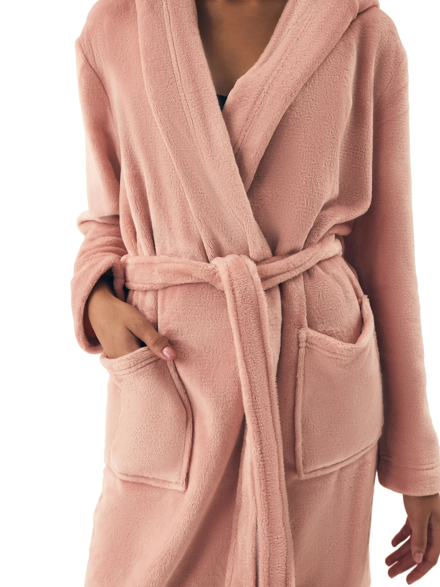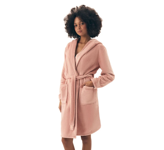 Dámský župan 42877 Brid pink HENDERSON - růžová barva - z vysoce jakostního měkkého materiálu - dlouhé rukávy - s kapsami - s kapucí - zavazování v pase na pásekMateriálové složení: 100% polyester