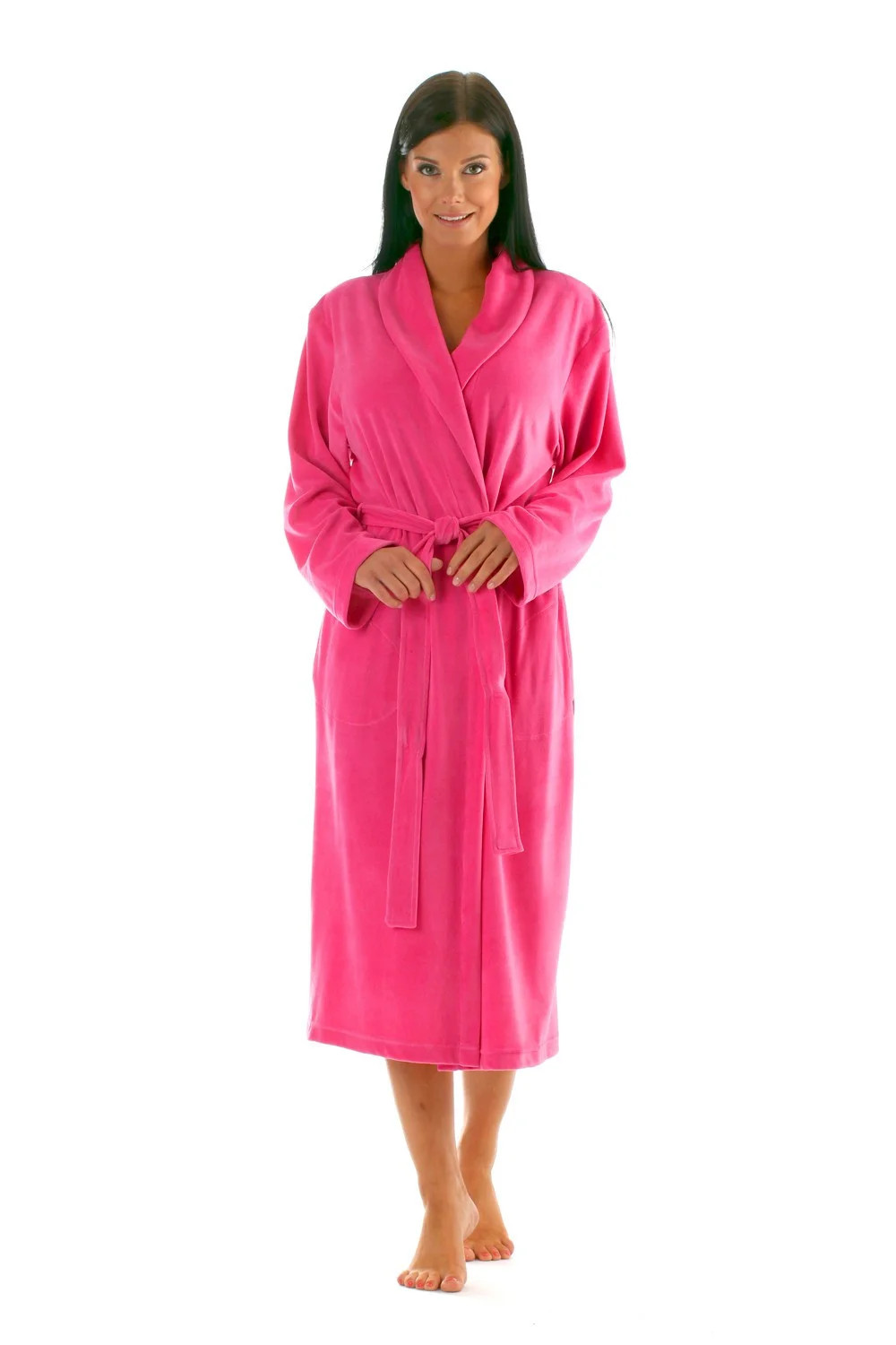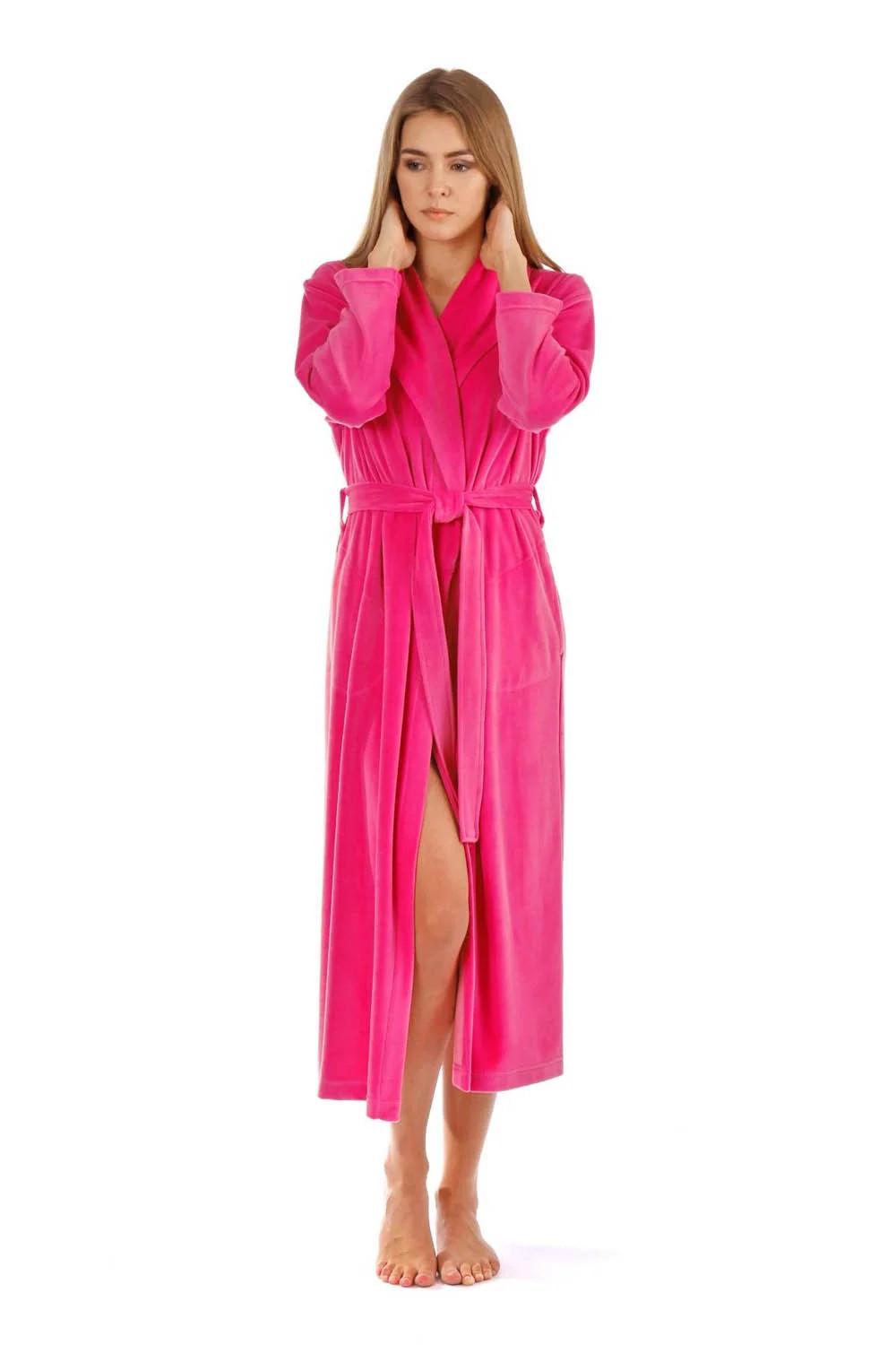 Ideální župan pro domácí relax, večerní odpočinek, ale i na cestování nebo do nemocnice. Lehký úpletový sametový velur se přizpůsobí vašim tvarům nijak neomezuje v pohybu. Župan má praktickou délku do poloviny lýtek, dvě skryté kapsy v bočních švech a pásek na převázání. Šálový límec dává županu elegantní vzhled. Tento klasický župan kombinuje maximální komfort s praktičností a nadčasovým stylem. Doplňte jej výšivkou monogramu v rámečku vystihujícím osobnost vaší dámy a získejte nádherný luxusní osobní dárek, který potěší a zároveň bude skvěle sloužit mnoho let.