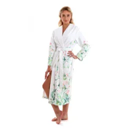Dámský župan s límcem JULIA 2151 0001 Bílá s květy - Vestis