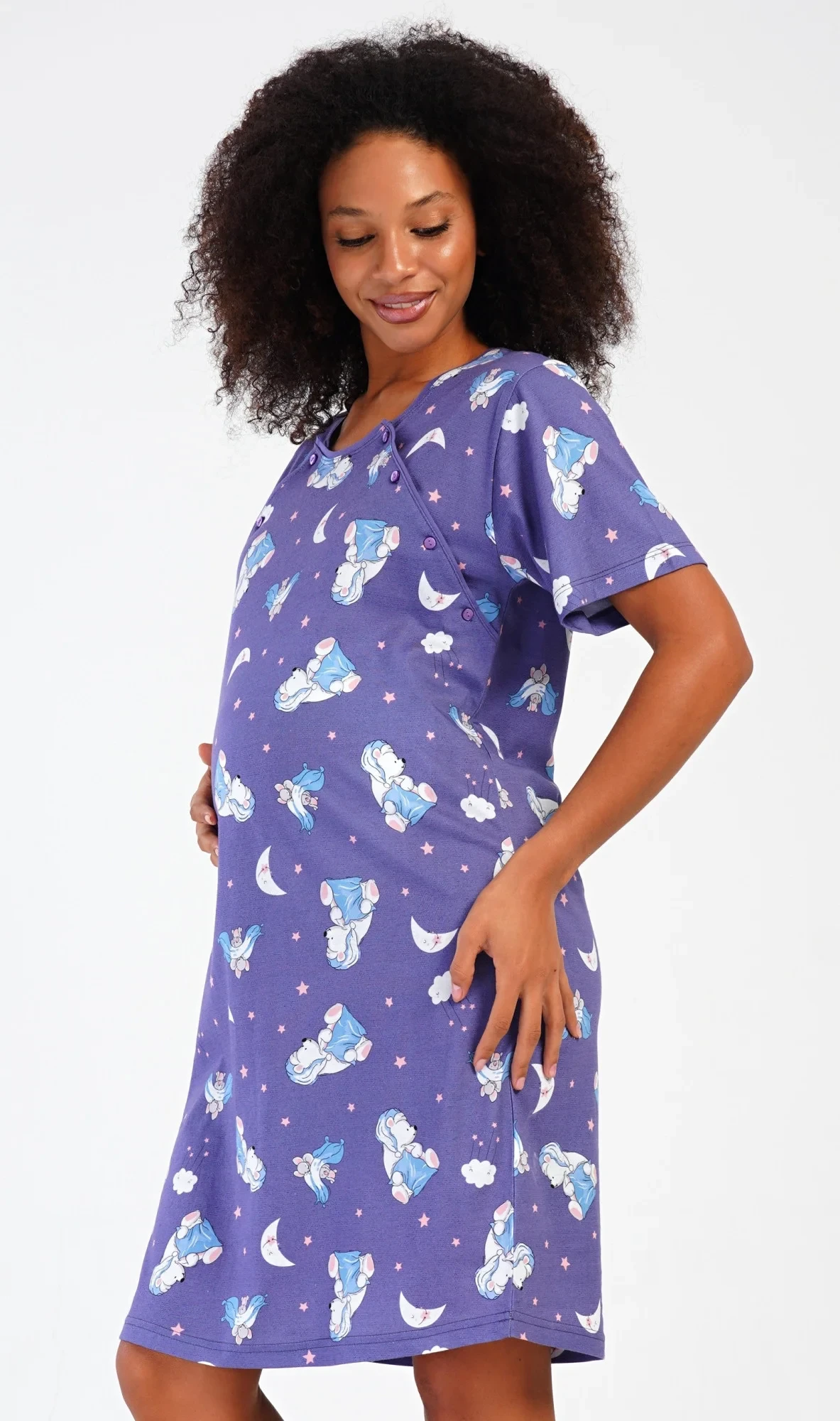 Dámský bavlněný župan s mateřskou košilí Méďa. Komplet se skládá z bavlněného županu a noční košile, která je svým střihem určena na dobu těhotenství, do porodnice, i na dobu kojení. Ke kojení slouží průstřihy na prsou uzavíratelné na knoflíky. Košile je potištěna obrázky ledních medvědů. Župan je jednobarevný, s tříčtvrtečními rukávy. Oceníte praktické kapsy a pásek na převázání. Kapsy, rukávy a vnitřní lem županu jsou ozdobeny modrou lemovkou. Použitý bavlněný materiál je příjemný a poddajný na dotek.