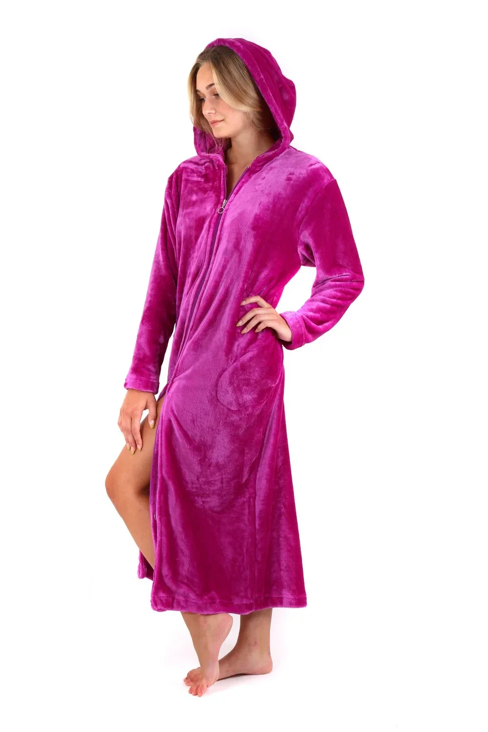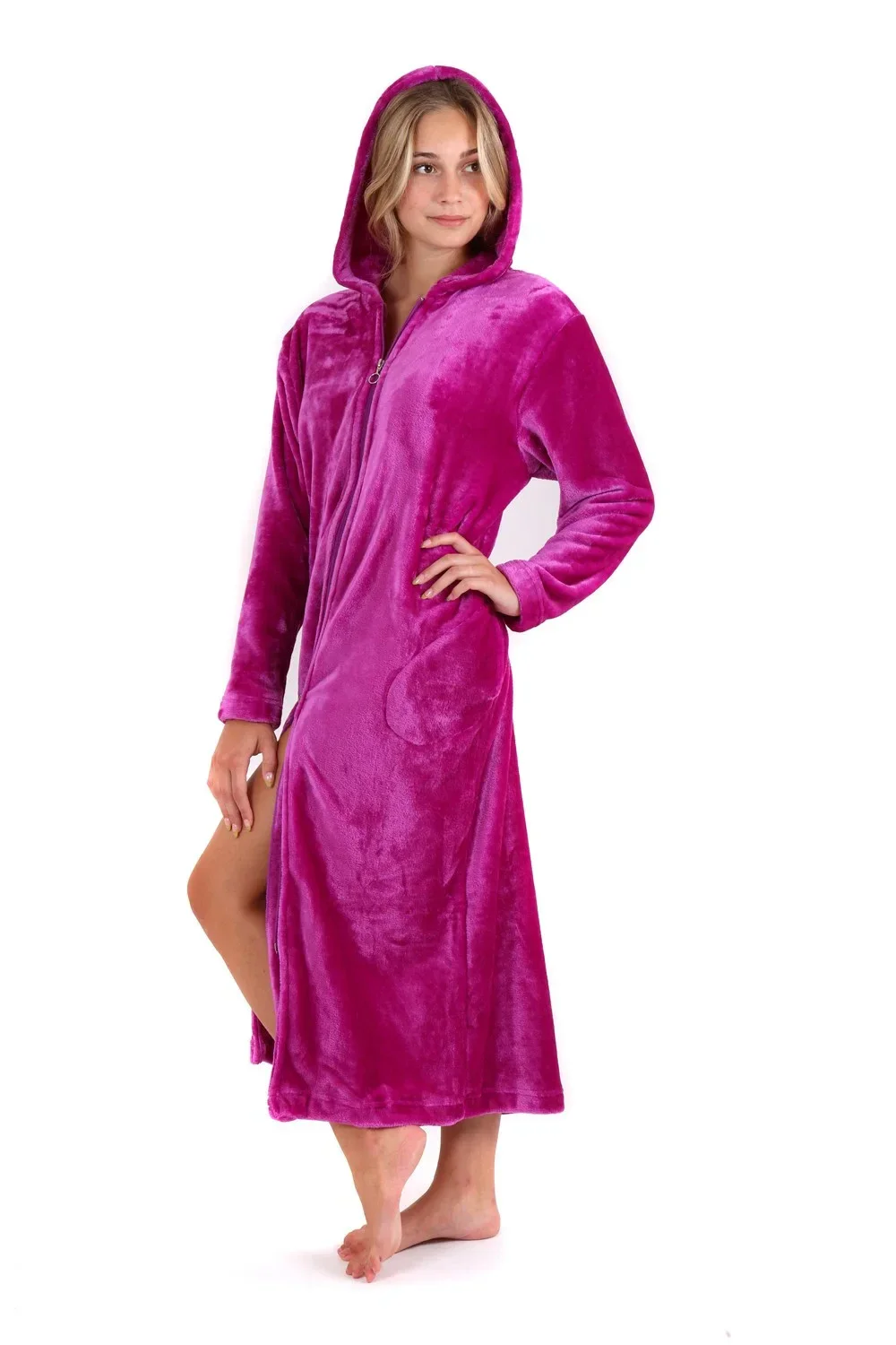 Dlouhý dámský župan Siena s kapucí na zip pro chvíle odpočinku a relaxace.