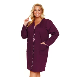 Szlafrok damski SMZ.7319 BIG Dr Nap to idealne połączenie wygody i kobiecej elegancji. Wykonany z wysokogatunkowej, miękkiej bawełny, zapewnia pełen komfort i oddychalność, dzięki czemu jest przyjazny dla skóry. Stylowe florystyczne akcenty przy dekolcie, rękawach i wzdłuż zapięcia nadają mu subtelnego, kobiecego uroku. Model zapinany na suwak jest niezwykle praktyczny i wygodny w codziennym użytkowaniu. Długość przed kolano oraz naszyte kieszenie sprawiają, że szlafrok jest nie tylko estetyczny, ale też funkcjonalny. Doskonały wybór jako narzutka na piżamę lub koszulę nocną – na poranek i wieczorny relaks.