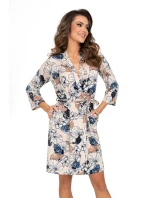 Dámský župan Sofia Donna - béžová barva - jemná viskóza s květinovým motivem - délka rukávu 3/4 - s kapsamiMateriálové složení: 95% viskóza + 5% elastan