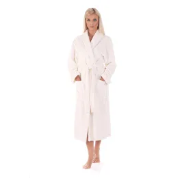 Měkký, savý materiál příjemně hřeje a zároveň dýchá. Šálový límec přidává dotek elegance, která nepůsobí okázale, ale přirozeně. Střih je pohodlný, volný, abyste se v něm cítila komfortně nejen doma ale i u bazénu, ve wellness nebo v odpočívárně vaší oblíbené sauny.