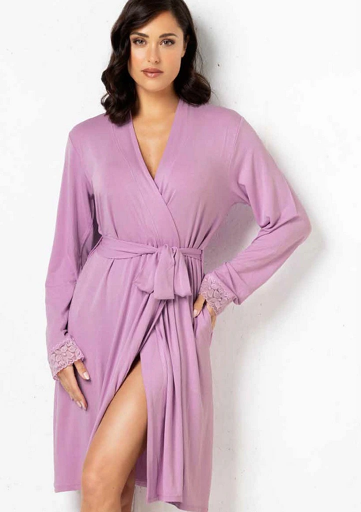 Dámský župan Veronica Verde představuje dokonalé spojení pohodlí a elegantního designu. Je vyroben z kvalitního materiálu s vysokým podílem viskózy, která je mimořádně jemná, prodyšná a příjemná na dotek. Díky tomu je župan ideální jak pro ranní chvíle, tak i pro večerní relaxaci. Rukávy jsou zakončeny jemnou krajkou, která dodává županu romantický a ženský nádech. Elegantní střih doplňuje klasické zavazování na pásek, které umožňuje přizpůsobení postavě a zajišťuje maximální komfort při nošení. Délka ke kolenům poskytuje ideální rovnováhu mezi pohodlím a decentním vzhledem, takže se v županu budete cítit příjemně a upraveně za všech okolností.