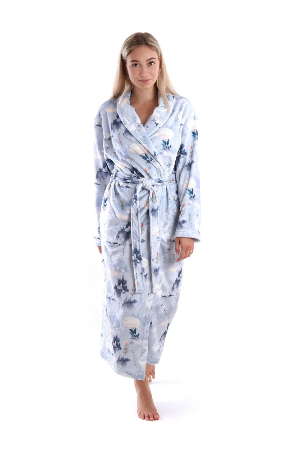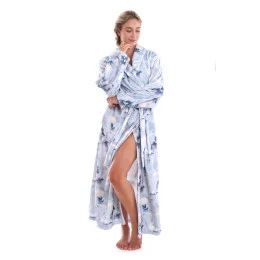 Župan Yuna z řady Secret Garden je lehký, příjemně hřejivý, dlouhý dámský župan s motivem jezera, kde se na poklidné hladině zrcadlí obraz vznešených elegantních jeřábů jejichž peří v odstínech šedé, bílé a černé vytváří harmonický kontrast podtrhující jeho majestátnost. Jeho přítomnost v krajině je jako jemný dotek umění, které spojuje přírodu s mystikou, eleganci s jednoduchostí. Jeřáb je poetickou připomínkou krásy, kterou příroda nabízí v těch nejjednodušších formách. Nechte se unést na křídlech jeřábů a hýčkat hedvábně jemným dotekem lehkého, hřejivého županu Yuna. Pohodlný střih spolu s precizním zpracováním vám zajistí dokonalý pocit pohodlí a relaxace.